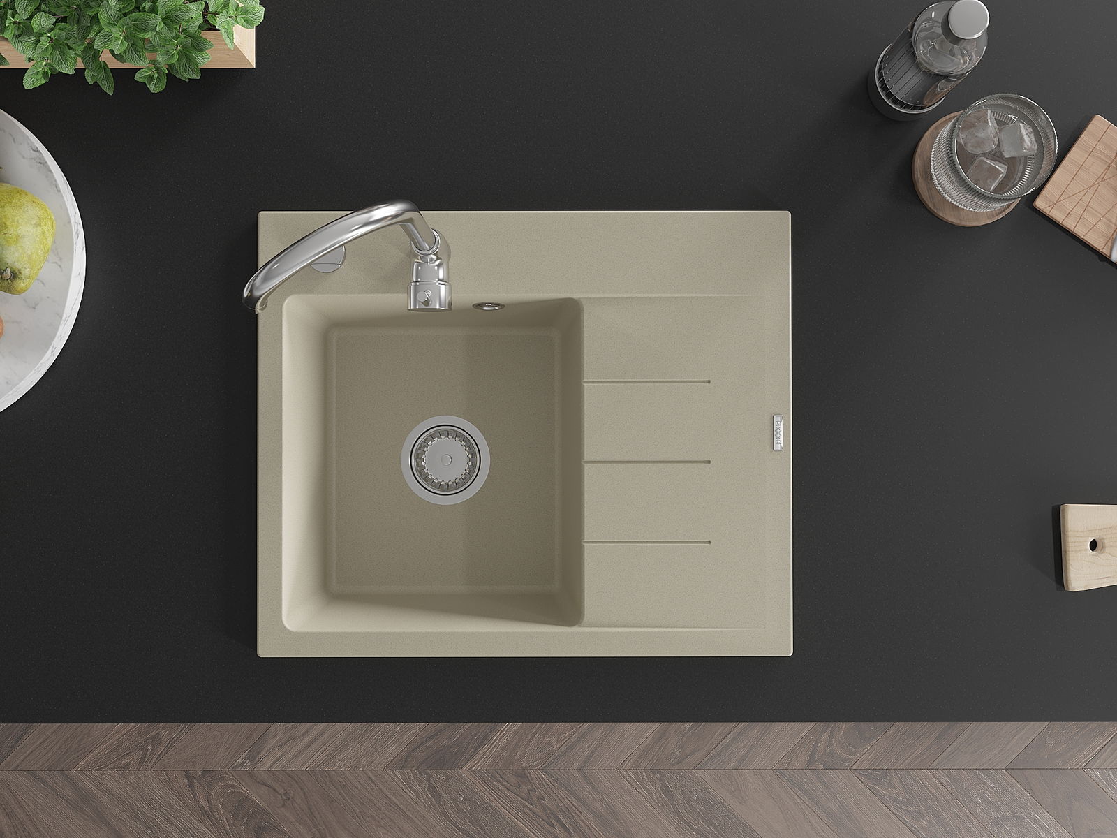 Den Ëmwäschbecken ass aus héichwäertege Granit gemaach. Et stellt eng elegant awer virun allem praktesch Ergänzung fir all Kichen duer, onofhängeg vun hirem Stil. Déi héich Qualitéit an Haltbarkeet vum Granit suergen fir méi järelaang Benotzung.