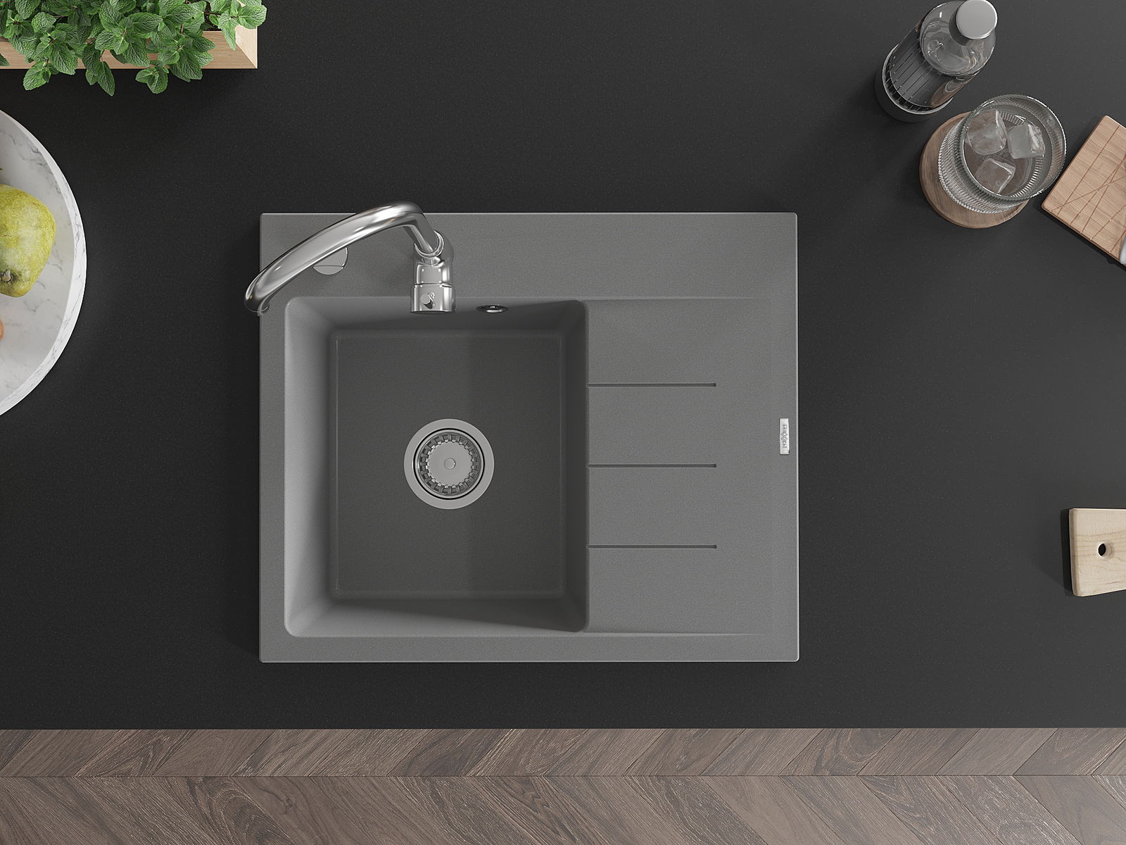Den Ëmwäschbecken ass aus héichwäertege Granit gemaach. Et stellt eng elegant awer virun allem praktesch Ergänzung fir all Kichen duer, onofhängeg vun hirem Stil. Déi héich Qualitéit an Haltbarkeet vum Granit suergen fir méi järelaang Benotzung.