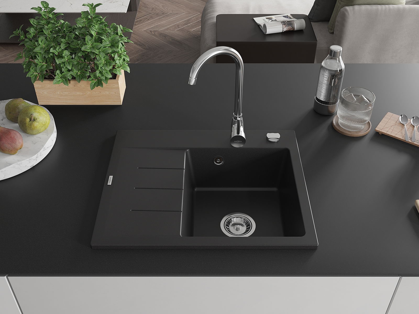Den Ëmwäschbecken ass aus héichwäertege Granit gemaach. Et stellt eng elegant awer virun allem praktesch Ergänzung fir all Kichen duer, onofhängeg vun hirem Stil. Déi héich Qualitéit an Haltbarkeet vum Granit suergen fir méi järelaang Benotzung.