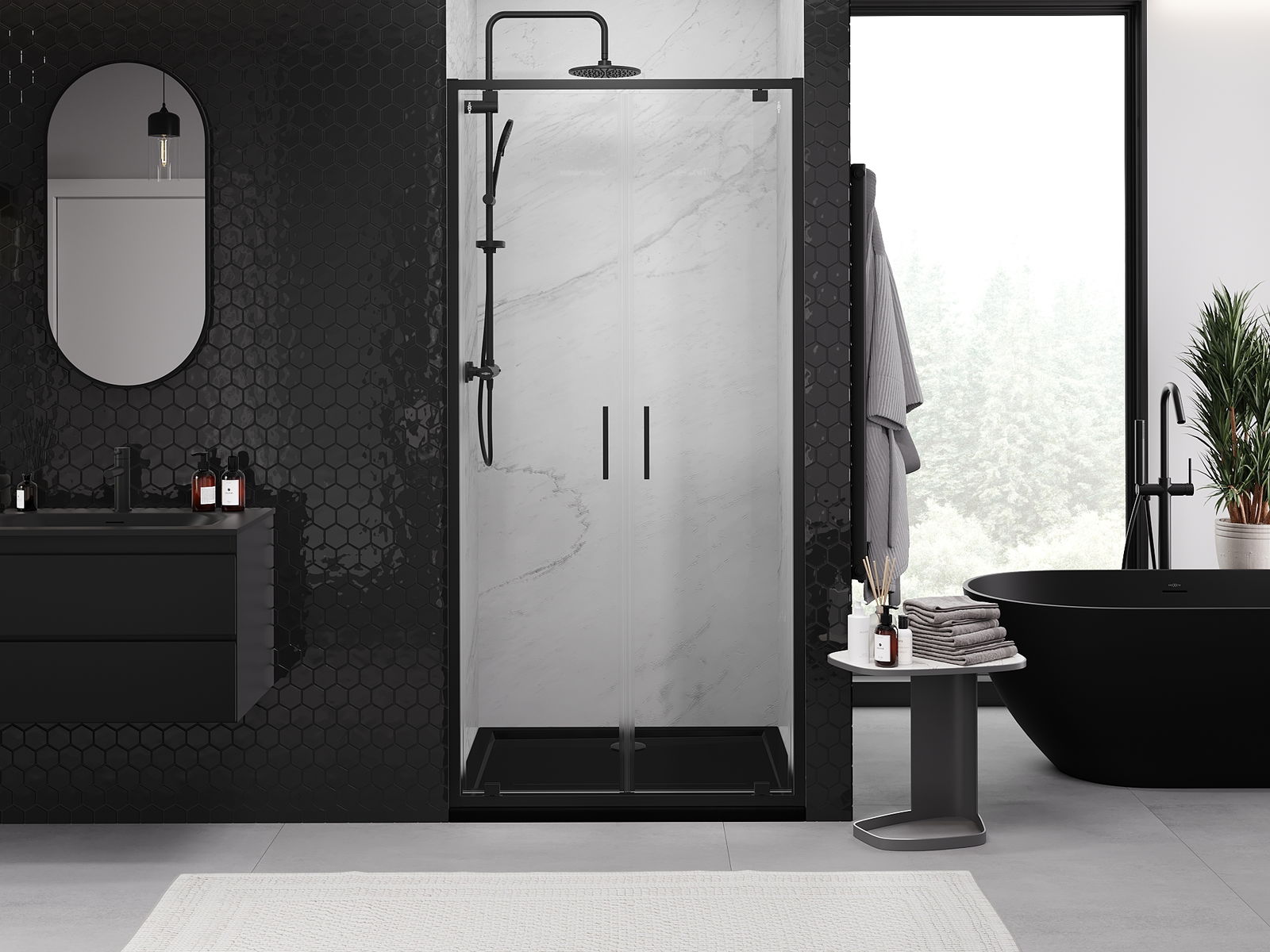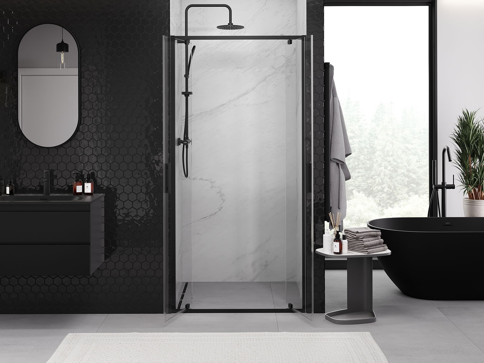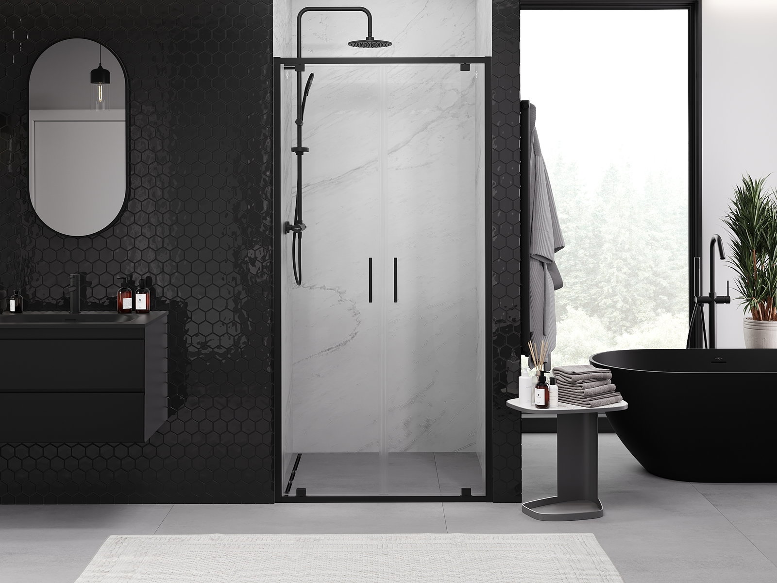 Dank dem universelle Montagesystem kënnen d'Duschdieren op der lénker oder op der rietser Säit montéiert ginn, ofhängeg vun de Besoinen. Duerch dëst kënns du de Buedzëmmer-Dusch mat Liichtegkeet un de Raum upassen.