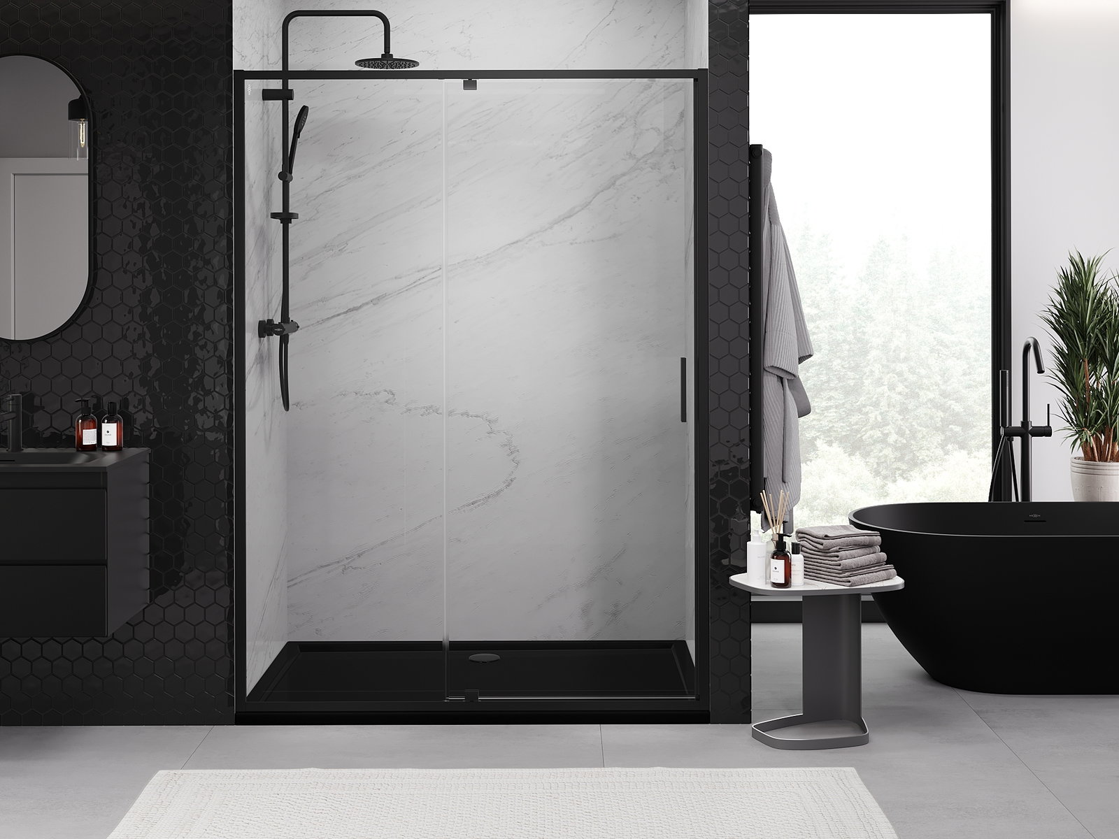 Dank dem universelle Montagesystem kënnen d'Duschdieren op der lénker oder op der rietser Säit montéiert ginn, ofhängeg vun de Besoinen. Duerch dëst kënns du de Buedzëmmer-Dusch mat Liichtegkeet un de Raum upassen.