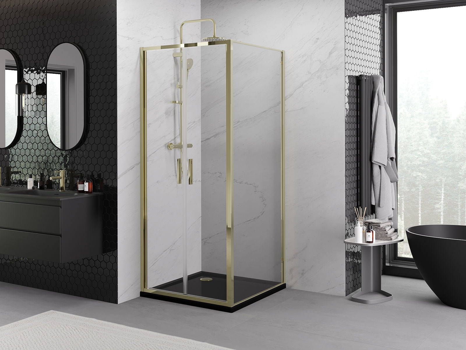 Mexen Rio quadratescht Duschkabinn 90 x 90 cm, transparent, schwaarz - 860-090-090-70-00