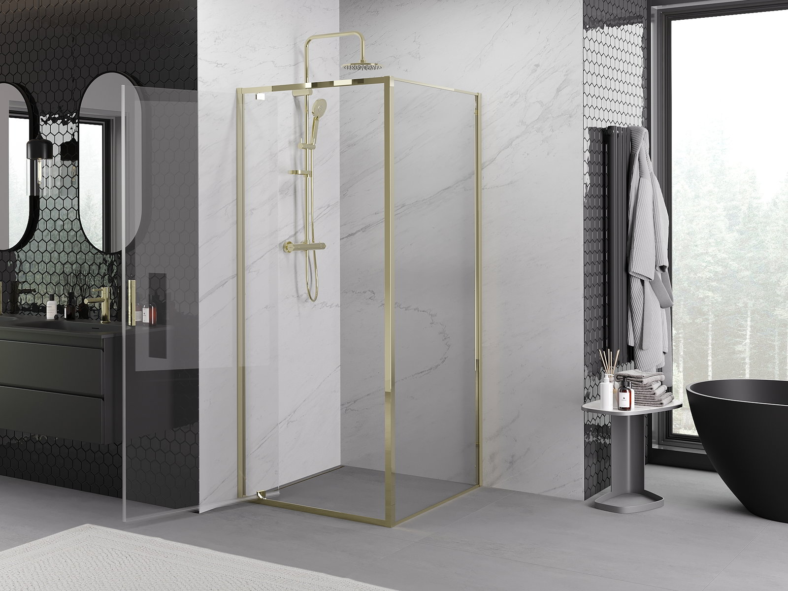 Mexen Exo oppendschmiereg Staub 85 x 85 cm, transparent, gëll - 8181-085-085-50-00
