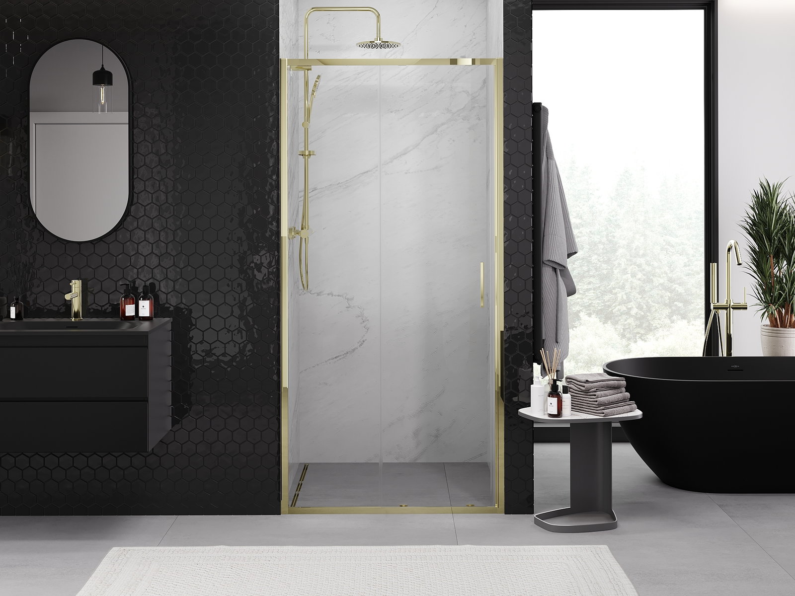 Mexen Exo rutschend Duschdier 110 cm, transparent, gëllen - 8151-110-000-50-00
