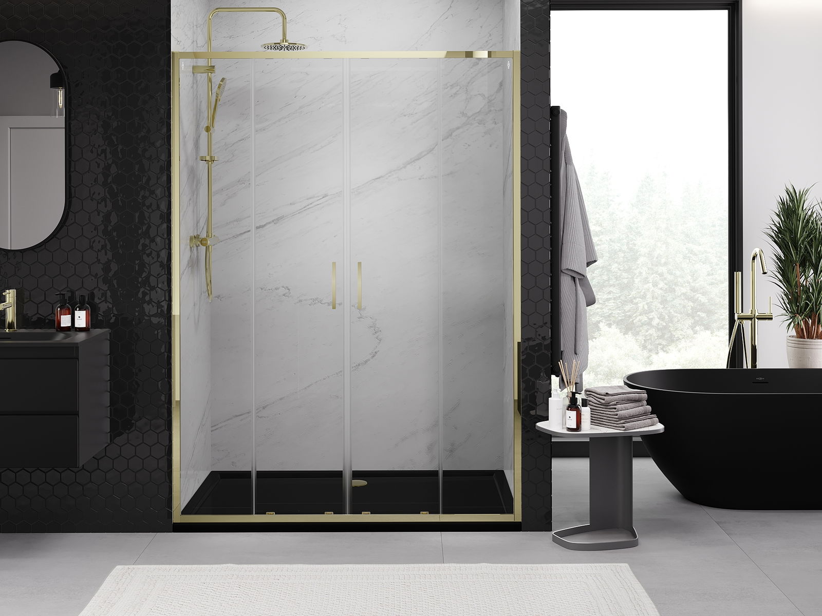 Mexen Exo Duebel Schiebedier 140 cm, transparent, gëllen - 8152-140-000-50-00