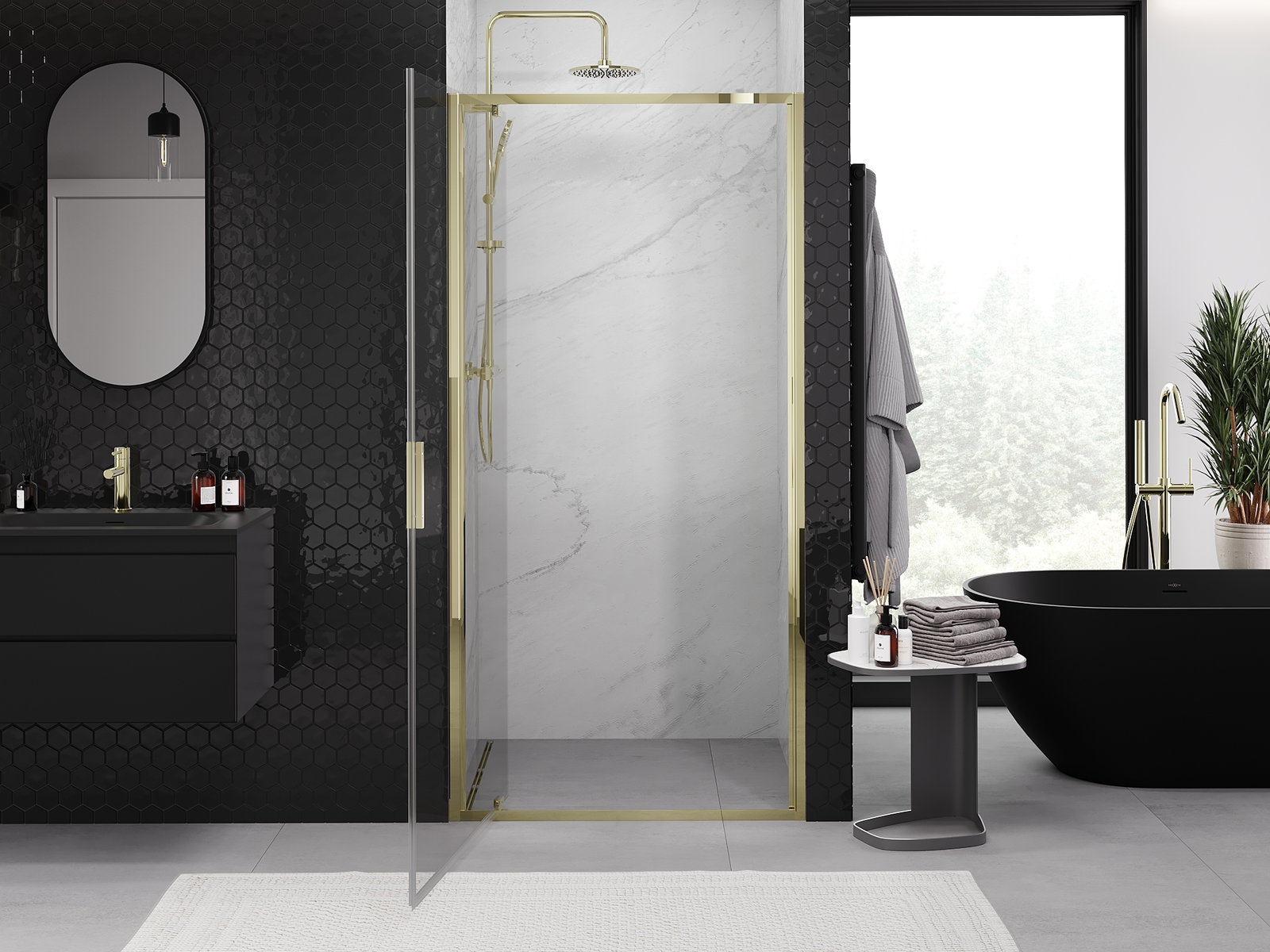 Dank dem universelle Montagesystem kënnen d'Duschdieren op der lénker oder op der rietser Säit montéiert ginn, ofhängeg vun de Besoinen. Duerch dëst kënns du de Buedzëmmer-Dusch mat Liichtegkeet un de Raum upassen.