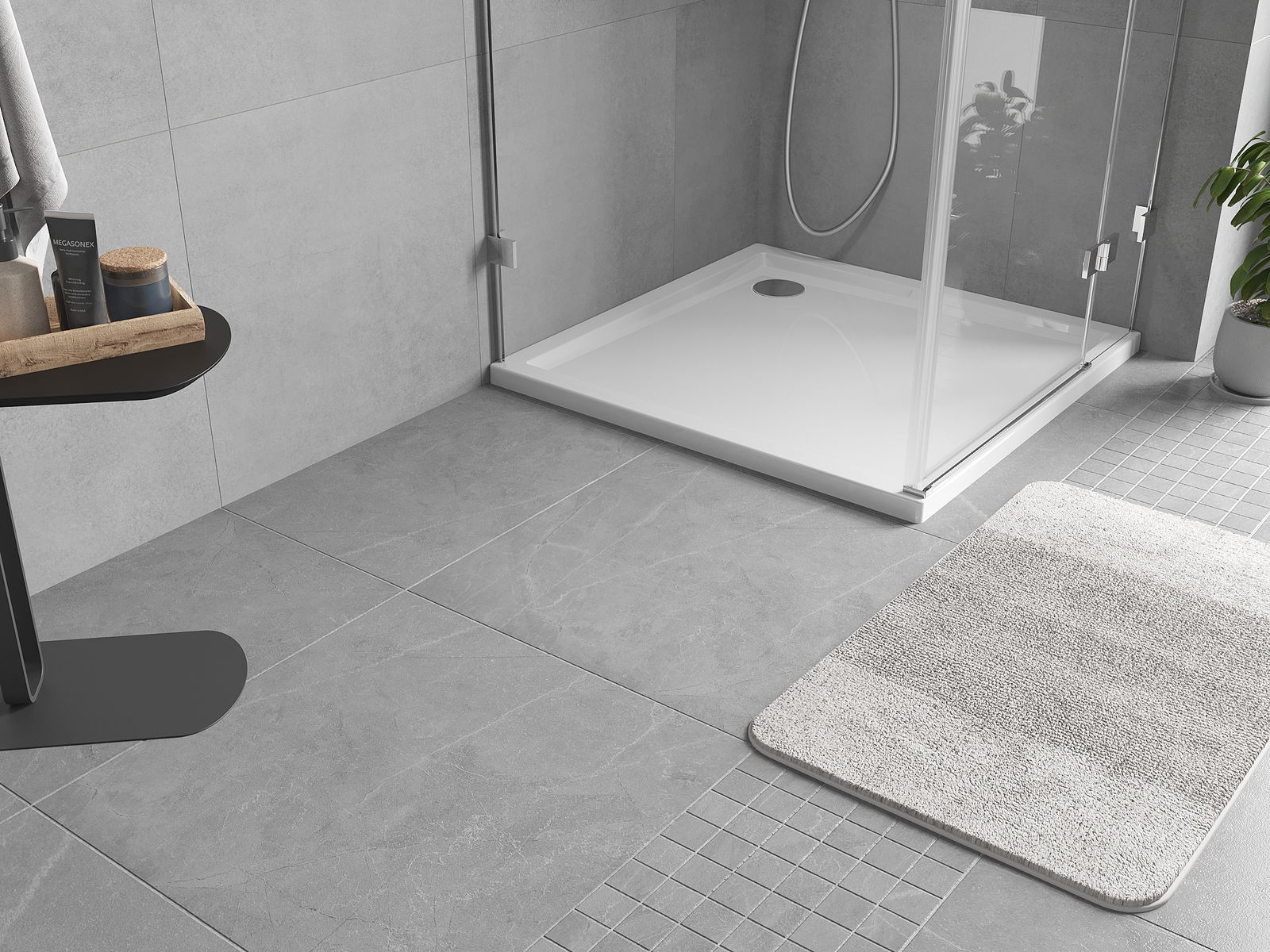 De Duschbecken huet en nidderege Rand, wat d'Andoen an d'Ausdoen aus der Dusch vereinfacht. Et füügt dem Raum en aussergewéinlecht an zäitlos Ofschloss bäi, a mécht d'Buedzëmmer zu enger komfortabler an ästhetescher Plaz fir alldeeglech Entspanung.