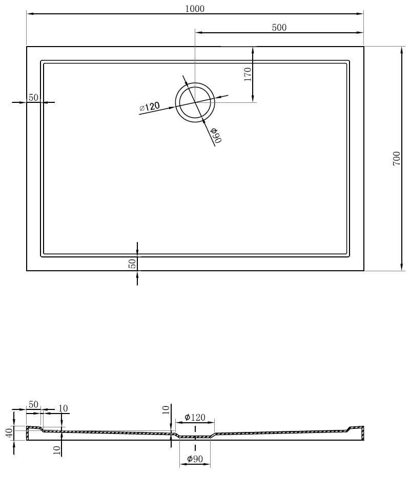 Den Douchebueden ass esou entwéckelt, datt d'Waasser fräi an d'Richtung vum Oflaaf kann oflafen. Et garantéiert en schnellen an effizienten Ofleedung vum Waasser vun der Uewerfläch vum Douchebued, fir d'Entstoe vu Pätz a Läcken an der Buedzëmmer ze vermeiden.