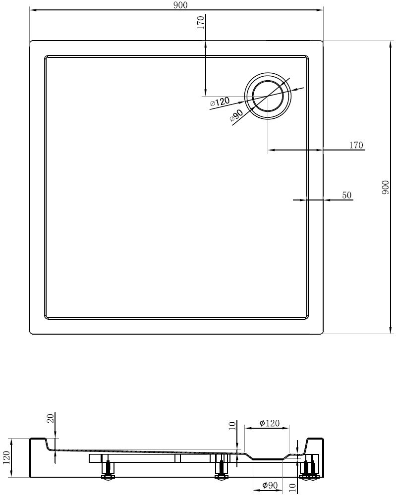Den Douchebueden ass esou entwéckelt, datt d'Waasser fräi an d'Richtung vum Oflaaf kann oflafen. Et garantéiert en schnellen an effizienten Ofleedung vum Waasser vun der Uewerfläch vum Douchebued, fir d'Entstoe vu Pätz a Läcken an der Buedzëmmer ze vermeiden.