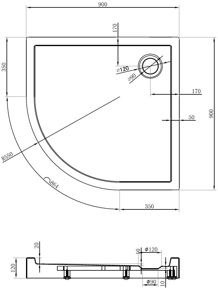 Den Douchebueden ass esou entwéckelt, datt d'Waasser fräi an d'Richtung vum Oflaaf kann oflafen. Et garantéiert en schnellen an effizienten Ofleedung vum Waasser vun der Uewerfläch vum Douchebued, fir d'Entstoe vu Pätz a Läcken an der Buedzëmmer ze vermeiden.