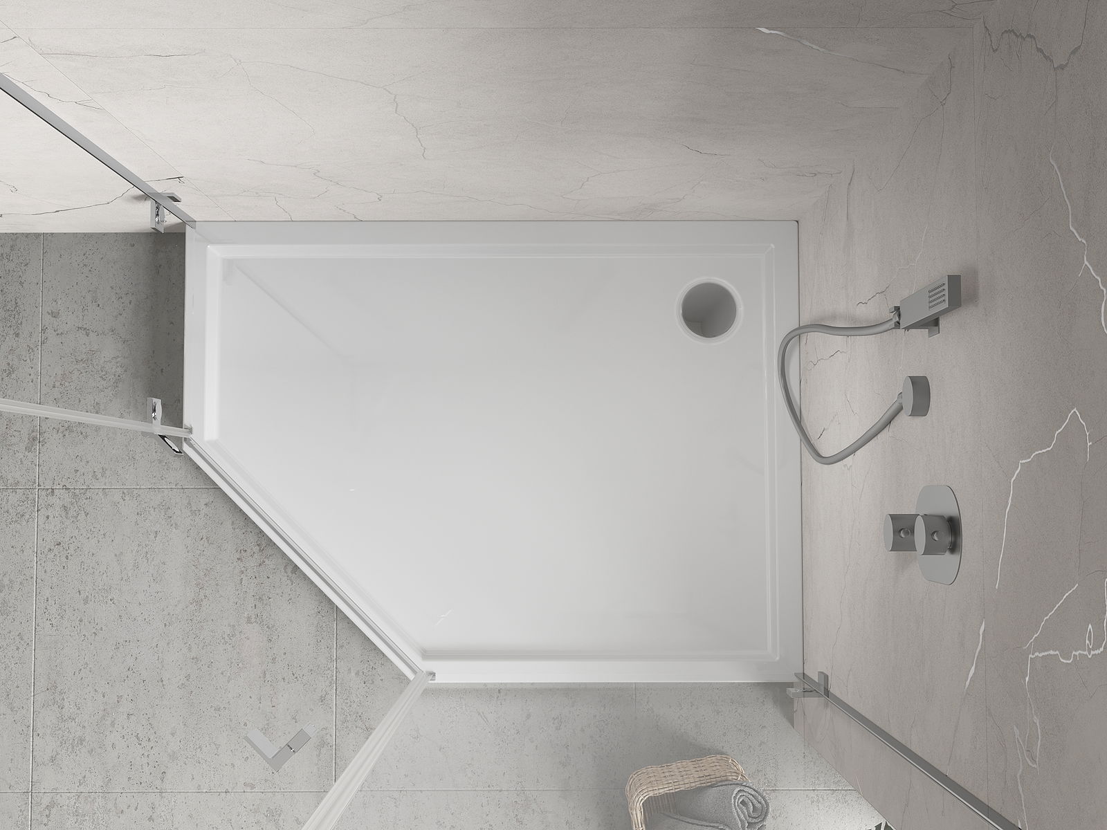Mexen Flow+ riichter pentagonal riets 100 x 80 cm, wäiss Glanz - 46P108010RH