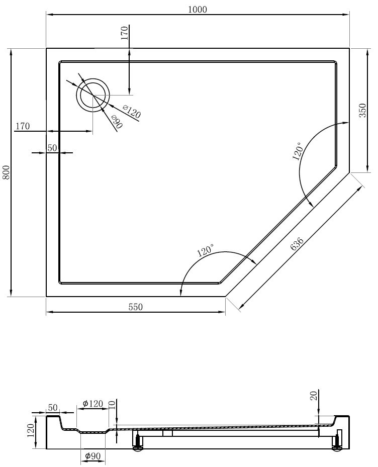 Den Douchebueden ass esou entwéckelt, datt d'Waasser fräi an d'Richtung vum Oflaaf kann oflafen. Et garantéiert en schnellen an effizienten Ofleedung vum Waasser vun der Uewerfläch vum Douchebued, fir d'Entstoe vu Pätz a Läcken an der Buedzëmmer ze vermeiden.