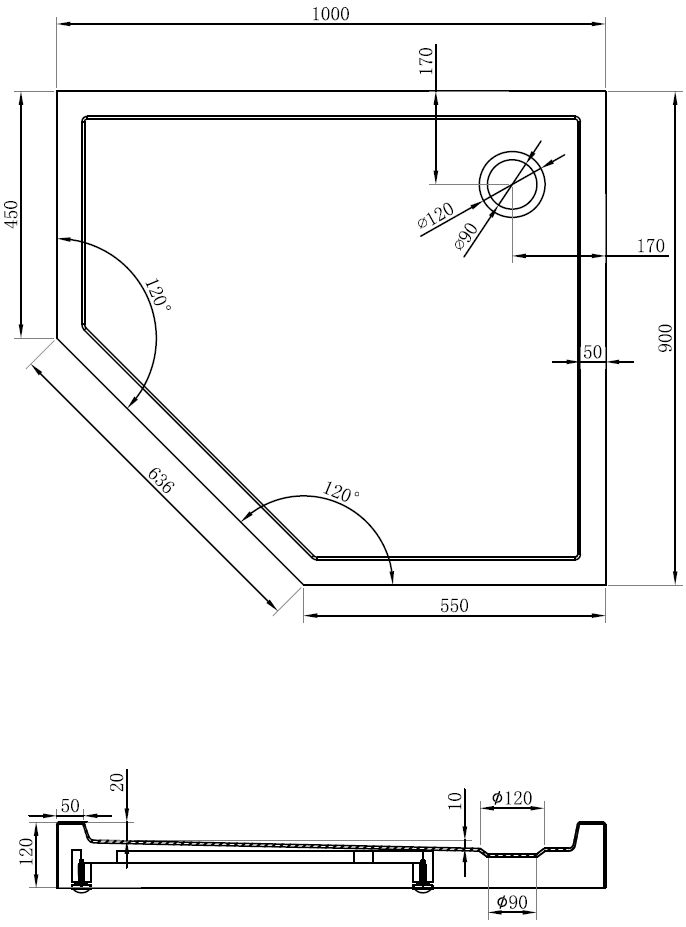 Den Douchebueden ass esou entwéckelt, datt d'Waasser fräi an d'Richtung vum Oflaaf kann oflafen. Et garantéiert en schnellen an effizienten Ofleedung vum Waasser vun der Uewerfläch vum Douchebued, fir d'Entstoe vu Pätz a Läcken an der Buedzëmmer ze vermeiden.