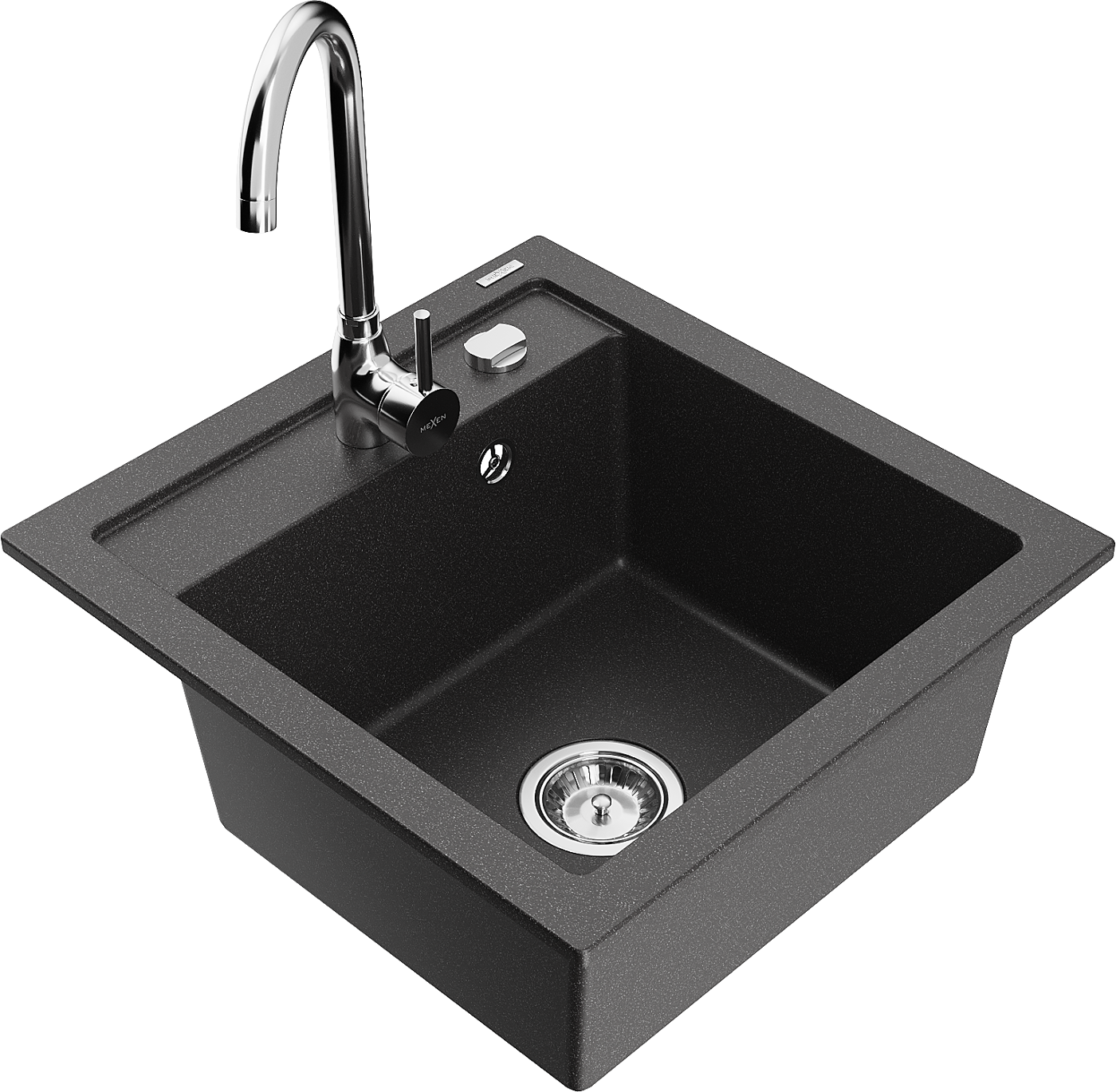 Mexen Vito Granit Ëmmerschwëmm 1-Kummer mat Kichenkran Telma, schwaarz sprëtzeg - 6503-76-670200-00