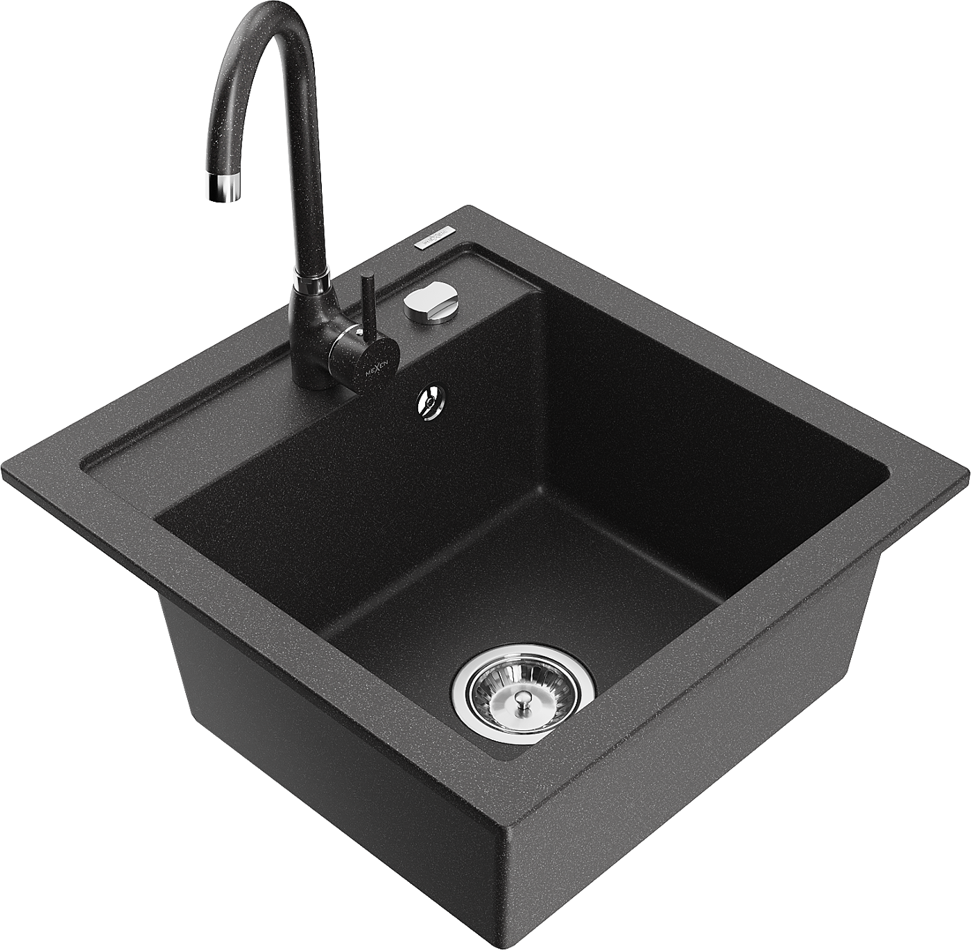 Mexen Vito Granit-Spullsteen mat enger Schoss an enger Kichenkran Telma, schwaarz gesprenkelt - 6503-76-670200-76