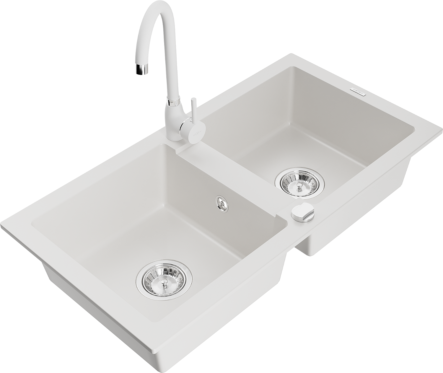 Mexen Mario Granit-Spullmupp 2-Chamber mat Kichenkran Telma, wäiss - 6504-20-670200-20