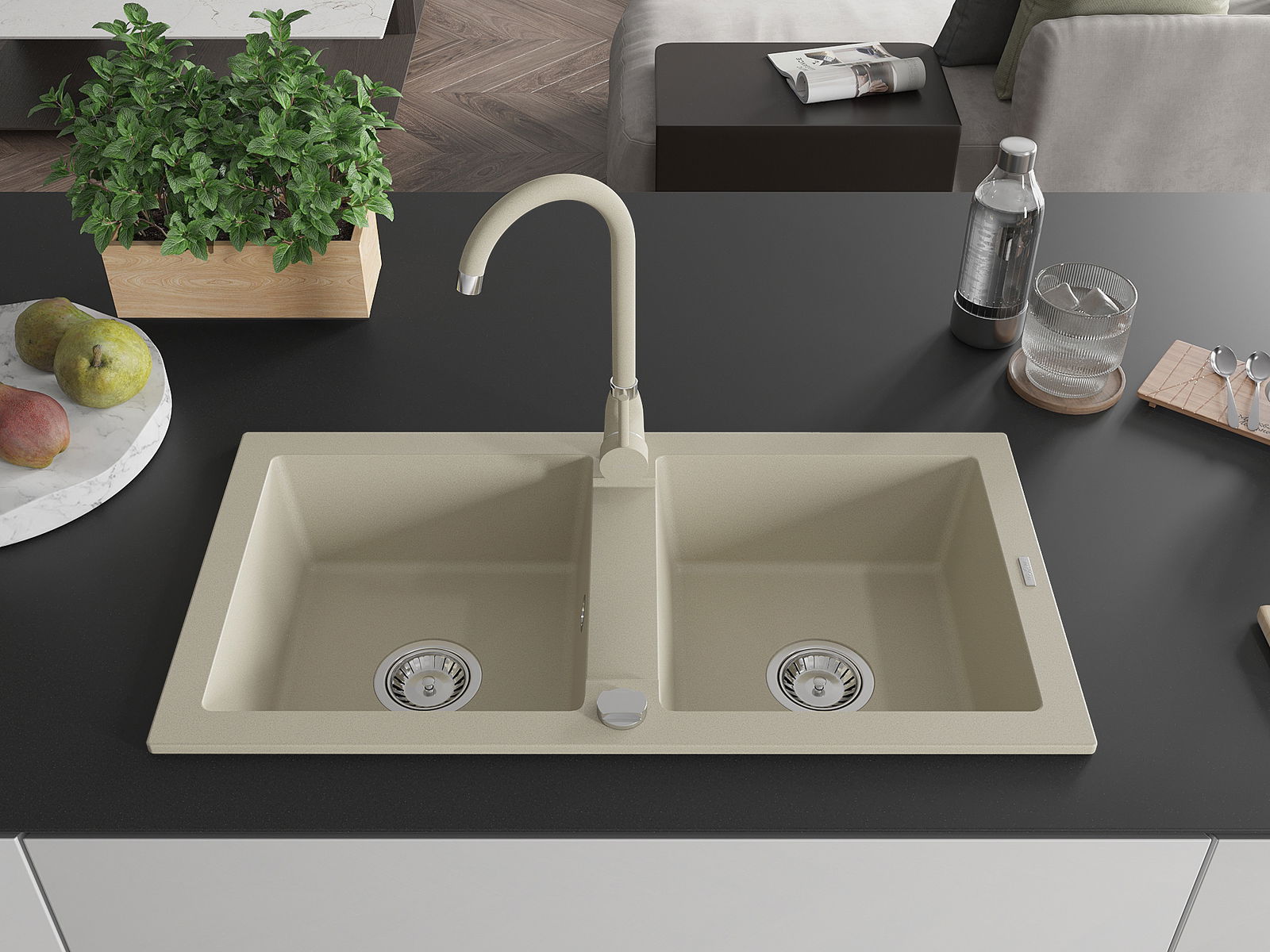 Den Ëmwäschbecken ass aus héichwäertege Granit gemaach. Et stellt eng elegant awer virun allem praktesch Ergänzung fir all Kichen duer, onofhängeg vun hirem Stil. Déi héich Qualitéit an Haltbarkeet vum Granit suergen fir méi järelaang Benotzung.