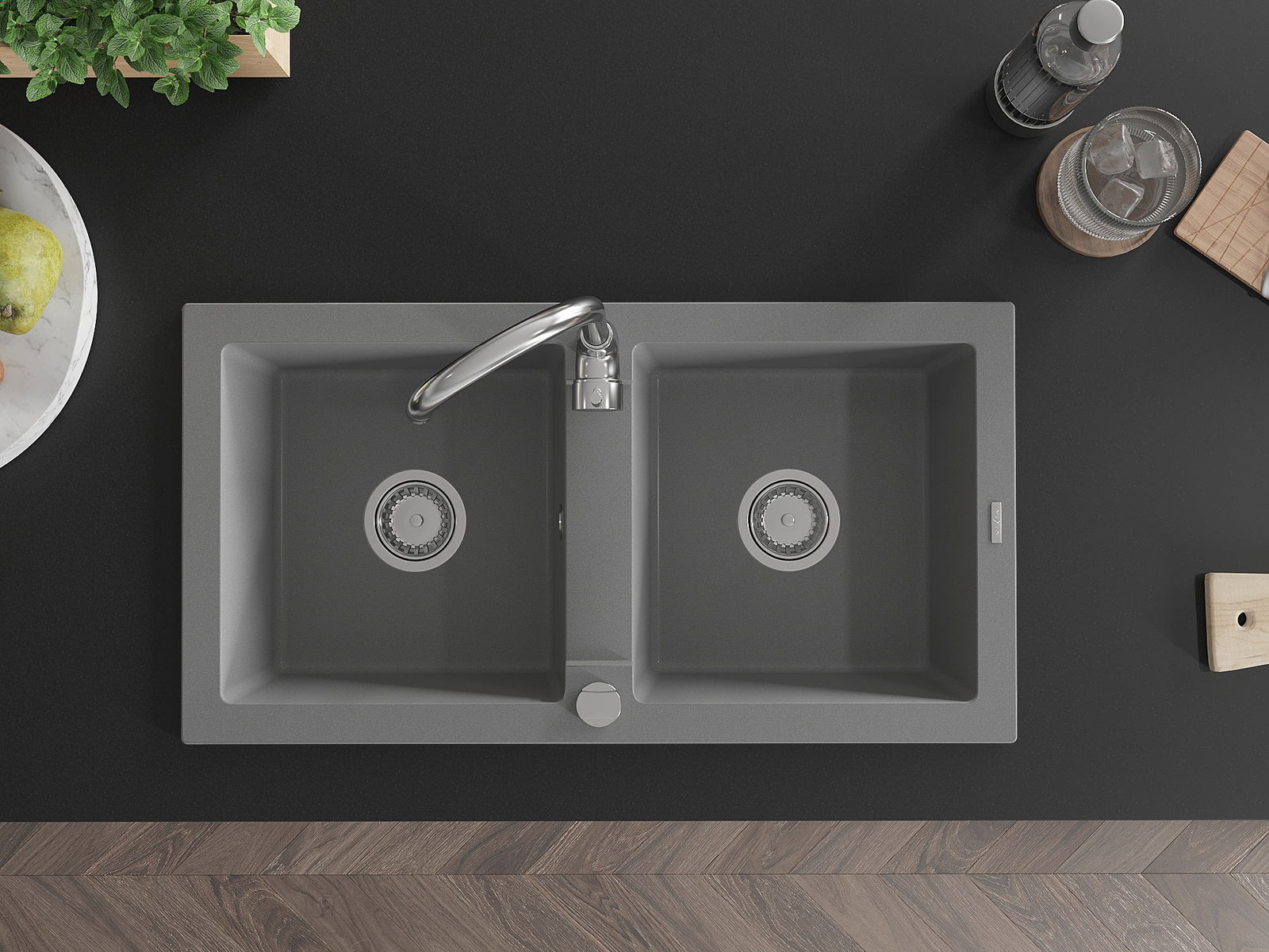 Mexen Mario Granit Spullsteen mat zwou Schosselen an eng Kichekraan Telma, gro - 6504-71-670200-00