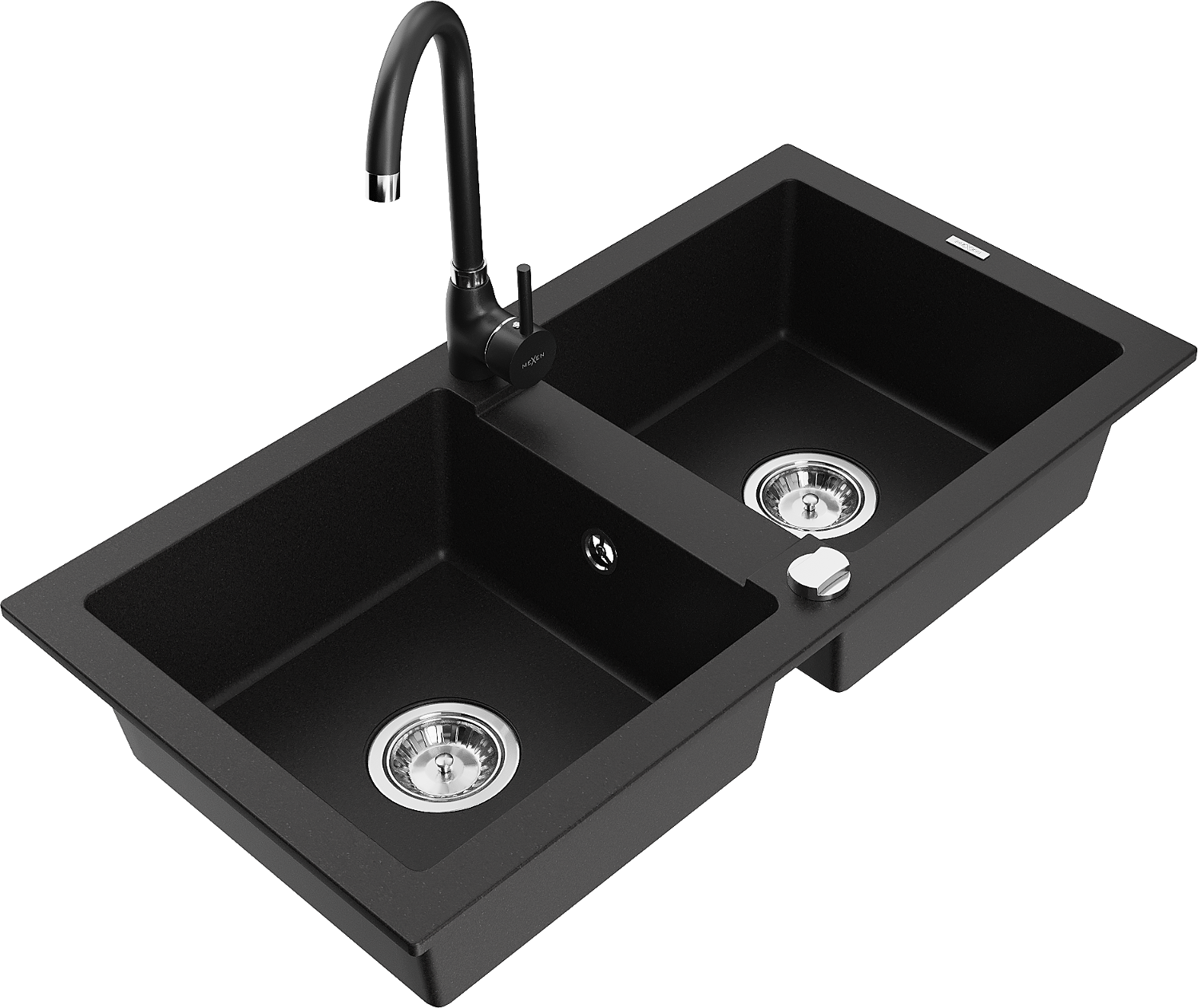 Mexen Mario 2-Kompartiments Granitt-Spullsteen mat Kichenkran Telma, schwaarz - 6504-77-670200-70