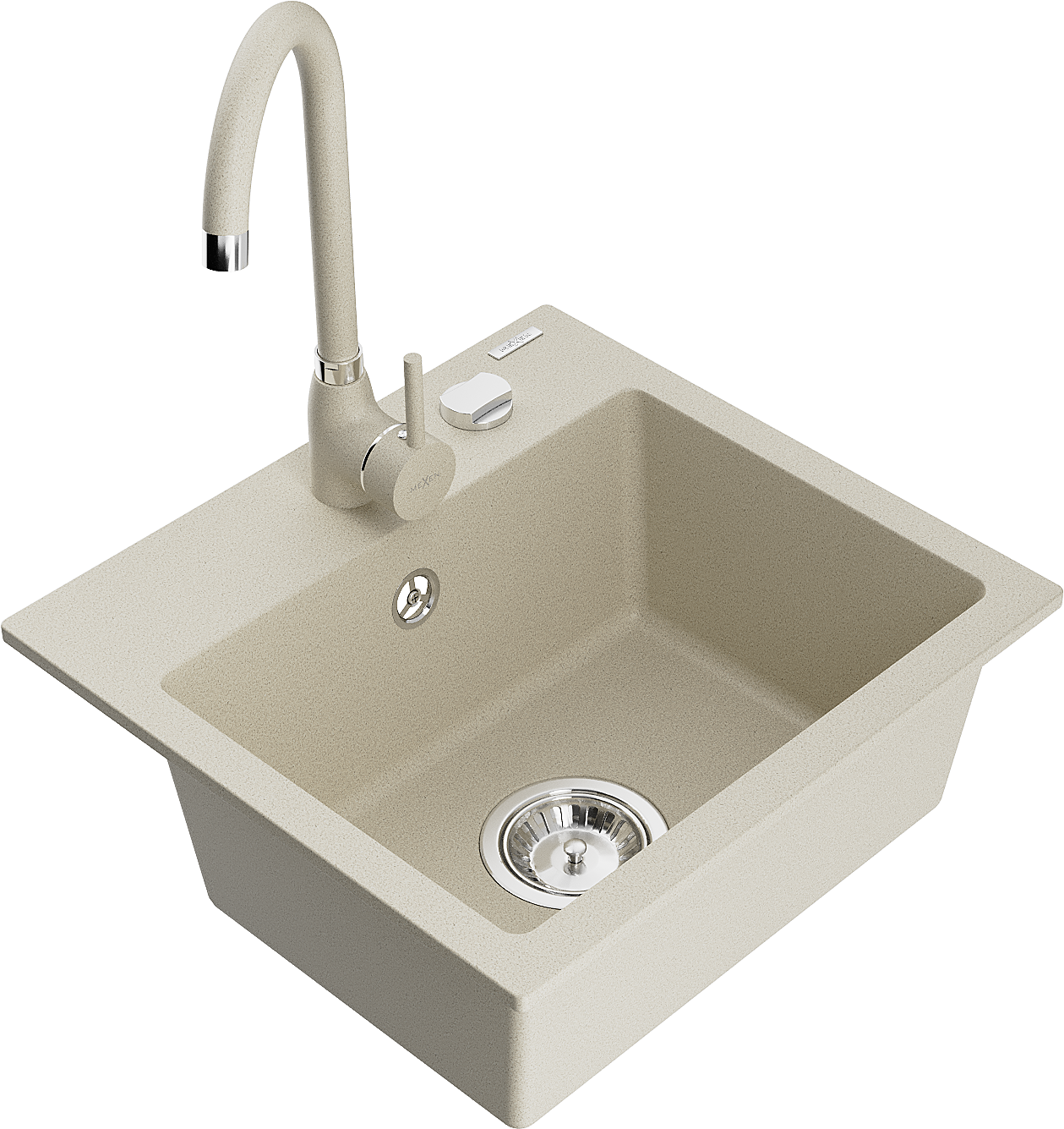 Mexen Milo Granit-Spullsteen 1-Kummer mat Kichenkran Telma, beige - 6505-69-670200-69