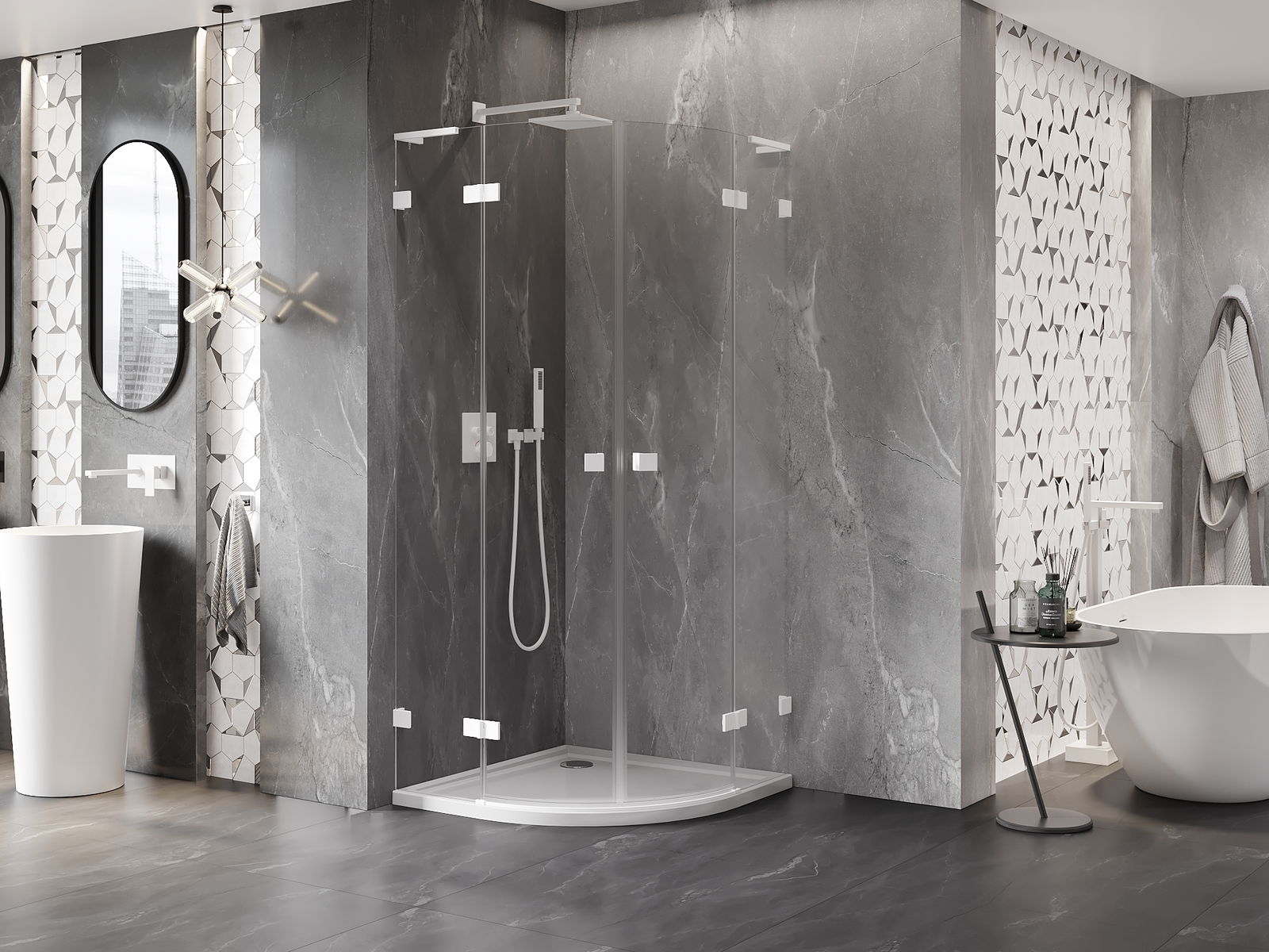 D'Klammen an d'Héngelen goufen aus ganz dauerhafte Messing gemaach, an zousätzlech schafen se eng ausgeglachen Glasfläche. Et ass eng exzellent Wiel, déi Eleganz, Haltbarkeet an modernen Design verbënnt. Mat esou Léisunge gewënnt d'Dusch un Ästhetik, an gläichzäiteg erliichtert et d'Rengen.
