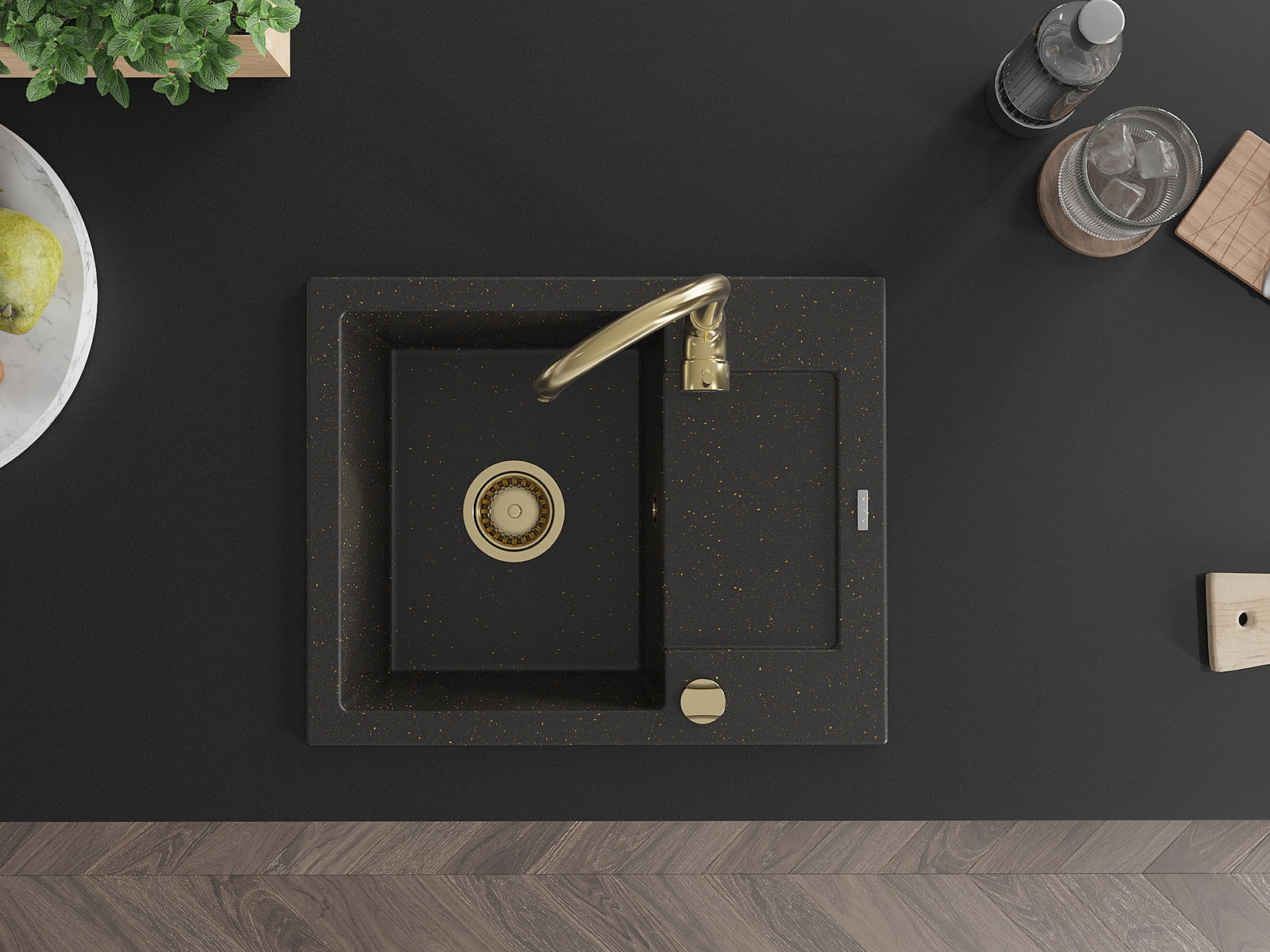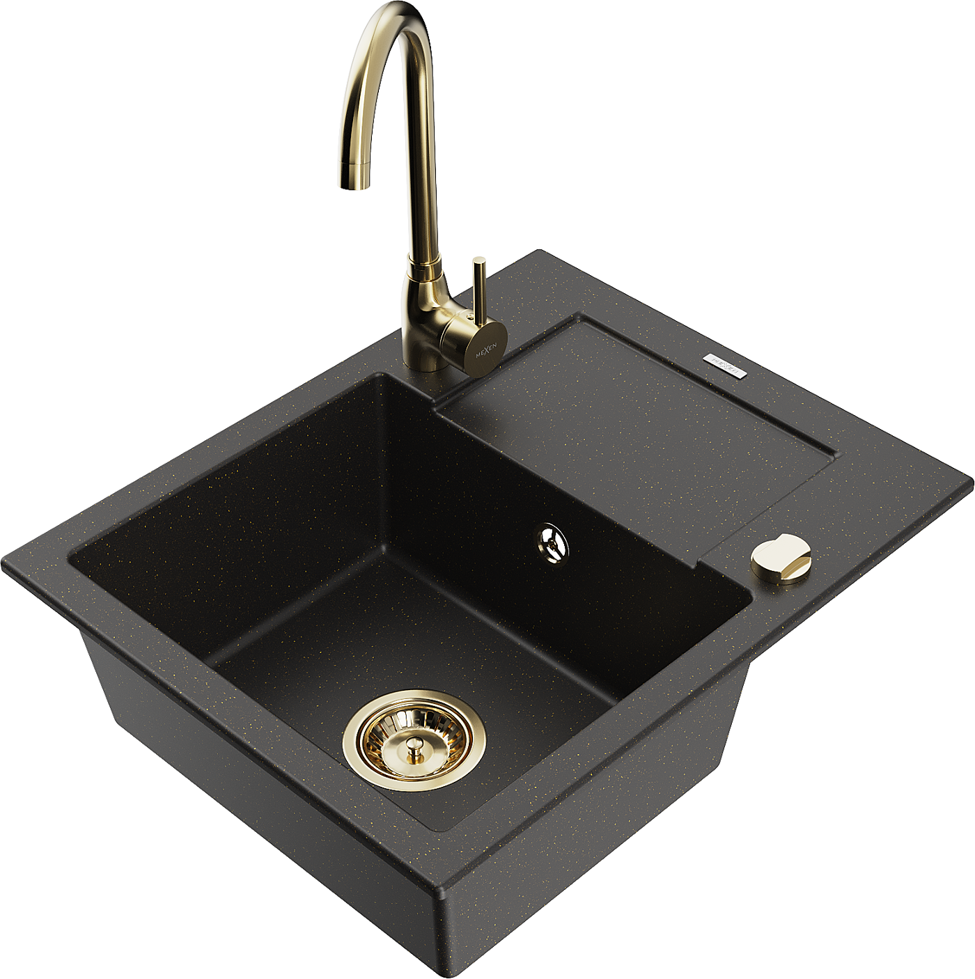 Mexen Enzo Granitspullsteng Een-Zëmmer mat Ofdrock an Kichekran Telma, schwaarz/golden - 6506-75-670200-50