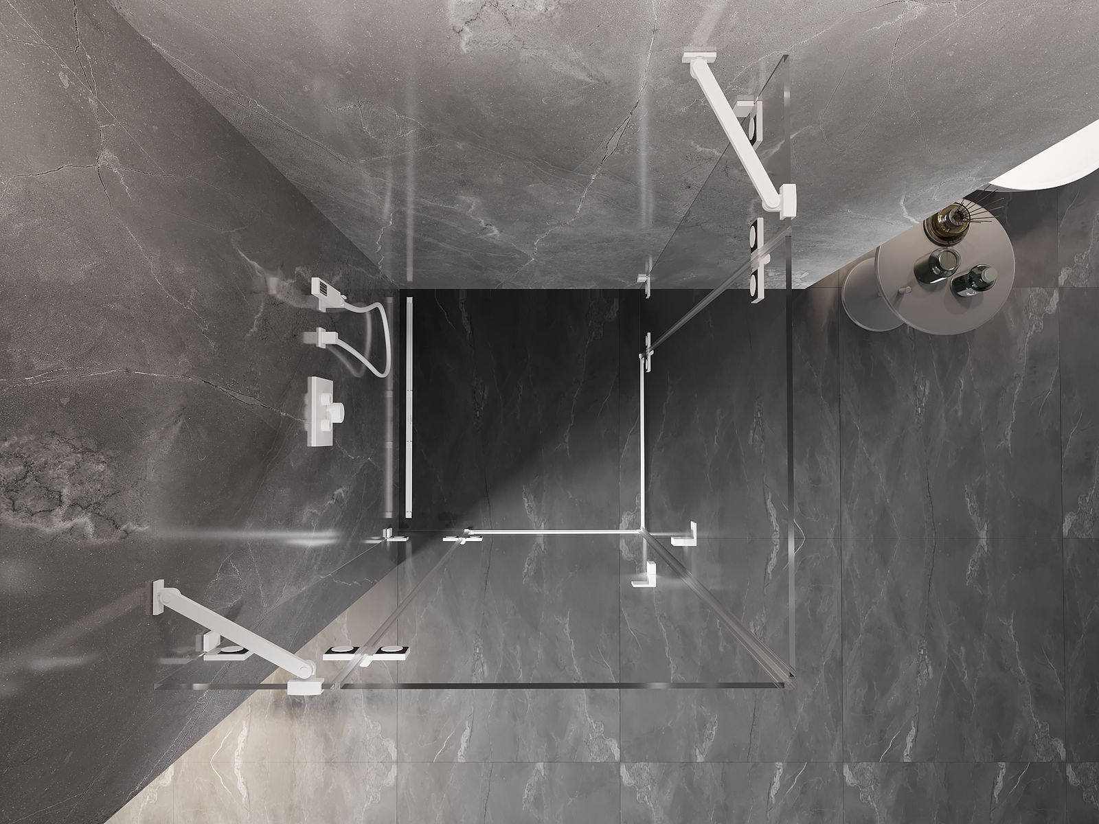 D'Klammen an d'Héngelen goufen aus ganz dauerhafte Messing gemaach, an zousätzlech schafen se eng ausgeglachen Glasfläche. Et ass eng exzellent Wiel, déi Eleganz, Haltbarkeet an modernen Design verbënnt. Mat esou Léisunge gewënnt d'Dusch un Ästhetik, an gläichzäiteg erliichtert et d'Rengen.