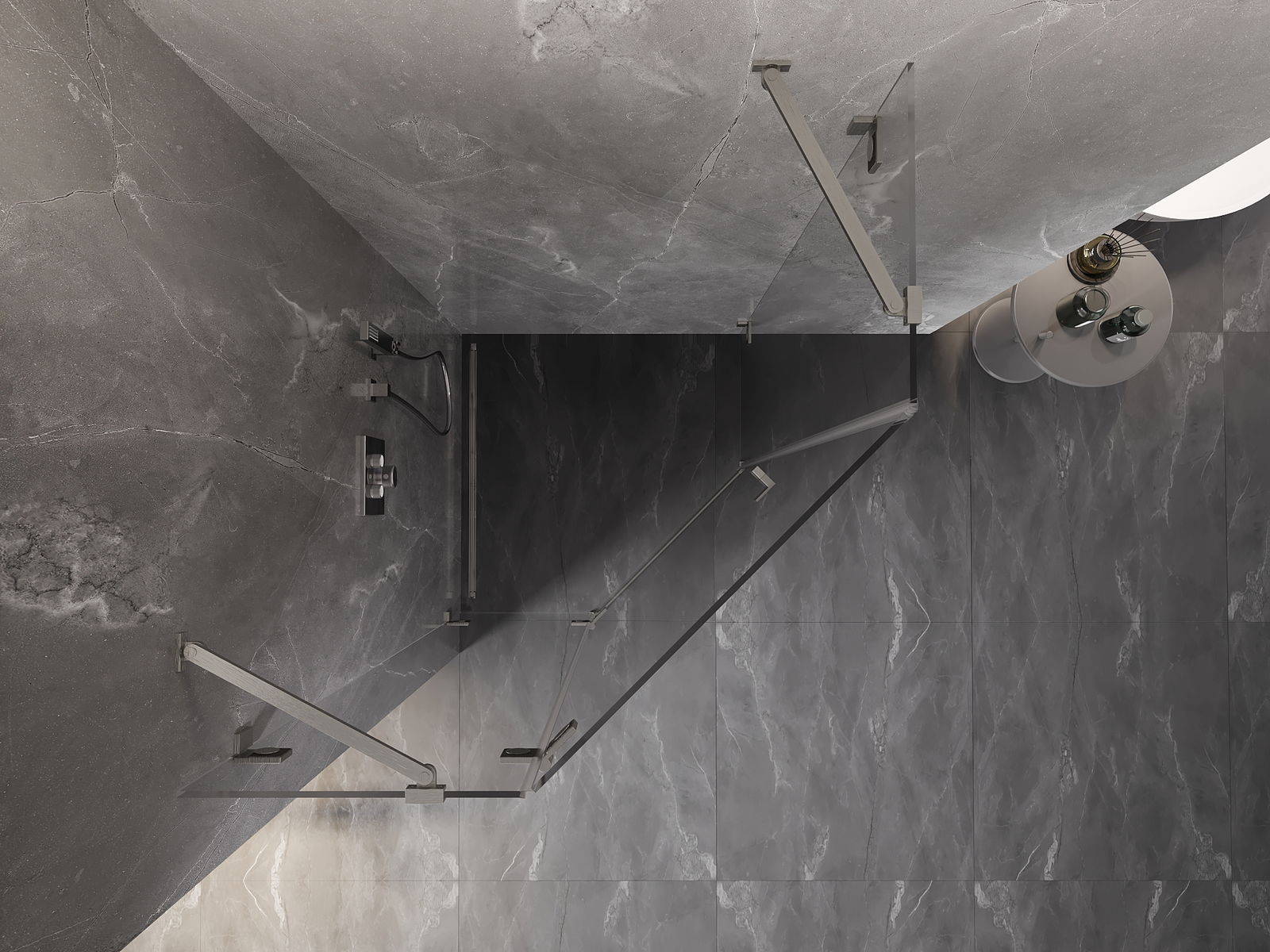D'Klammen an d'Héngelen goufen aus ganz dauerhafte Messing gemaach, an zousätzlech schafen se eng ausgeglachen Glasfläche. Et ass eng exzellent Wiel, déi Eleganz, Haltbarkeet an modernen Design verbënnt. Mat esou Léisunge gewënnt d'Dusch un Ästhetik, an gläichzäiteg erliichtert et d'Rengen.