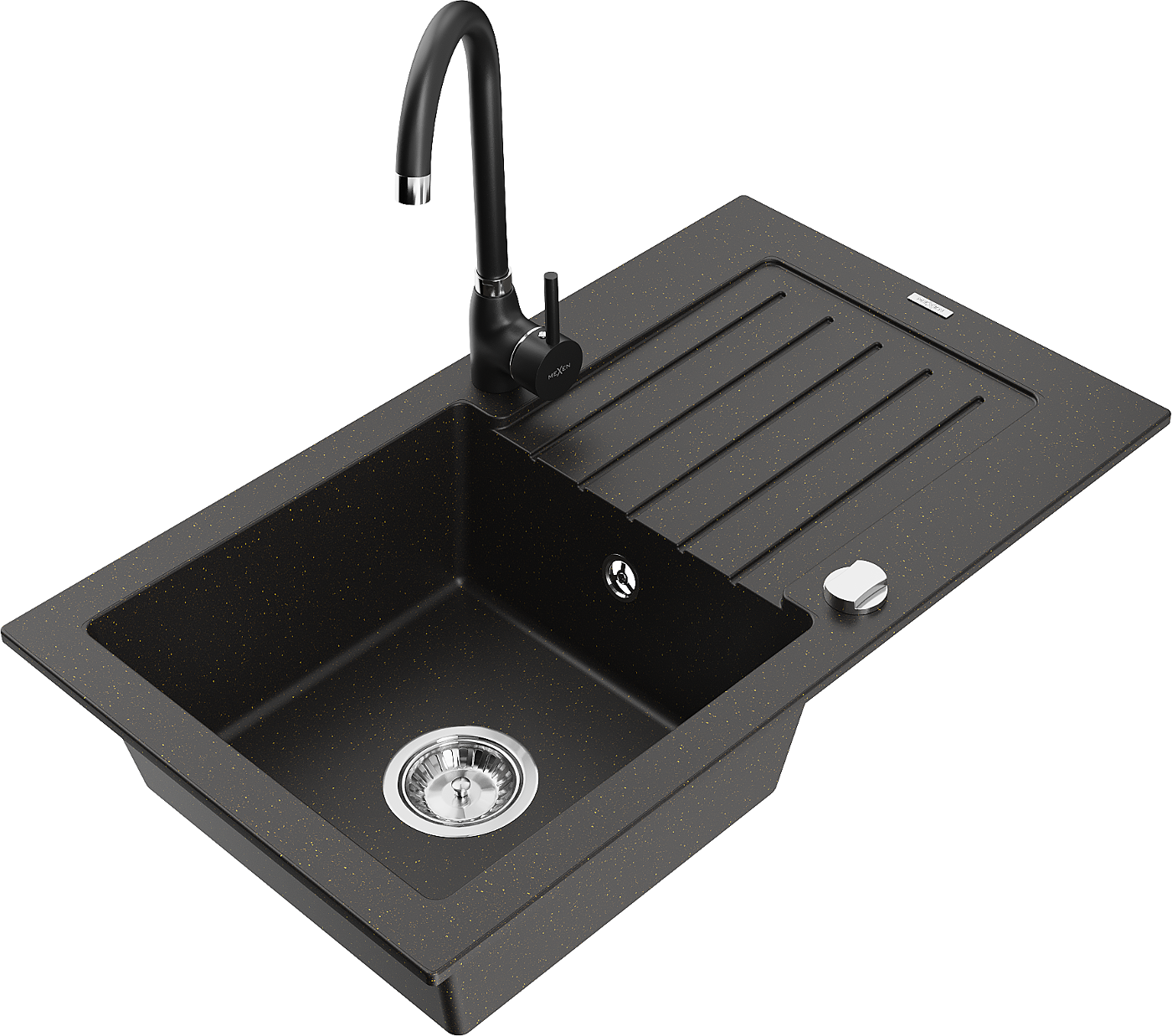 Mexen Pablo Granitspullt 1-Kammer mat Drëpschutz a Kichekraan Telma, schwaarz/gëllen - 6510-75-670200-70