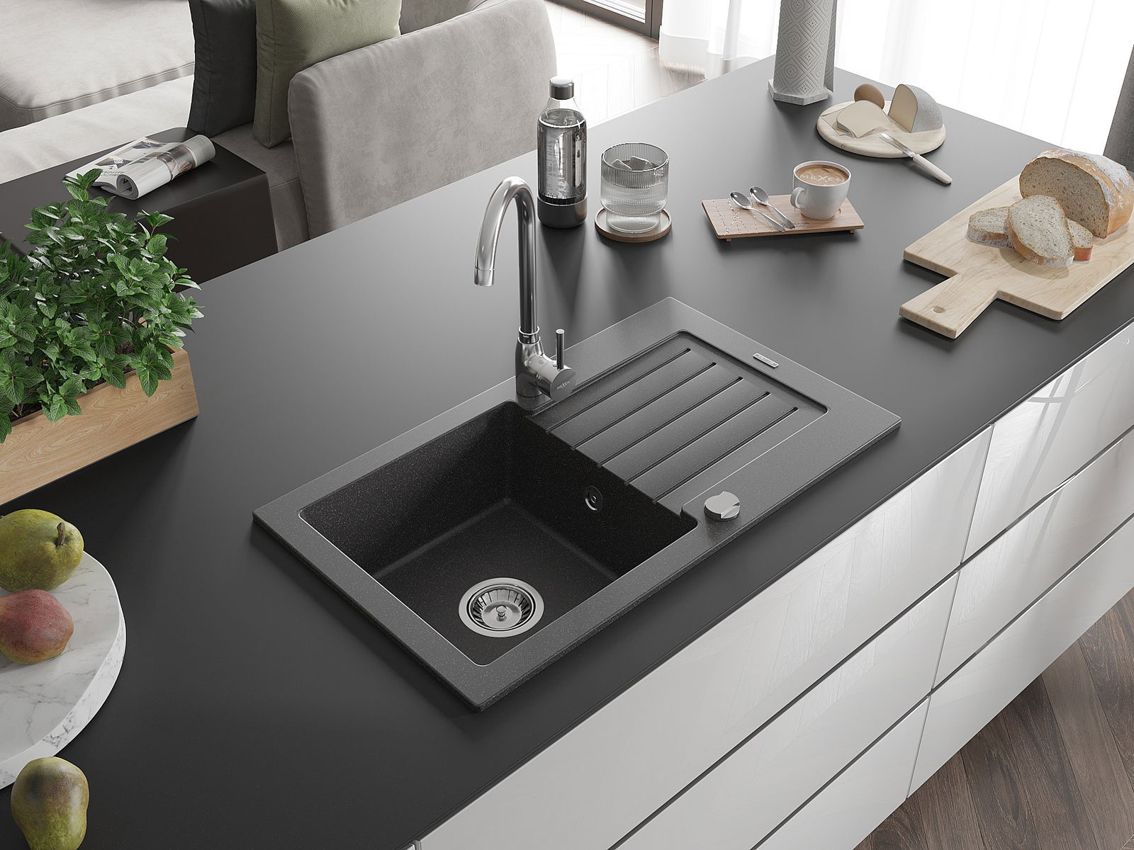 Mexen Pablo Granitspull up 1-Kommunikatioun mat Drainage an Telma Kichenkran, schwaarz gesprinkelt - 6510-76-670200-00