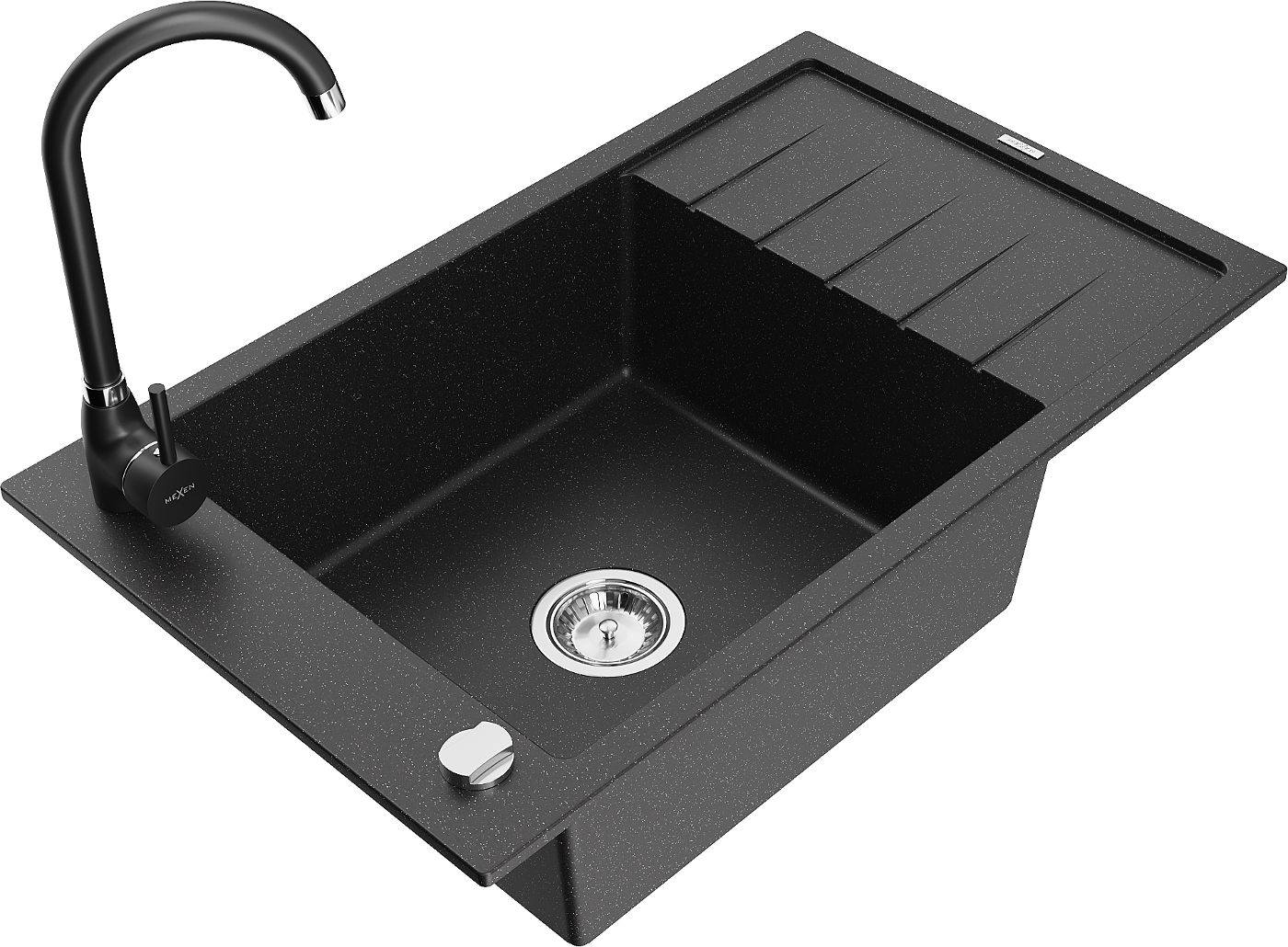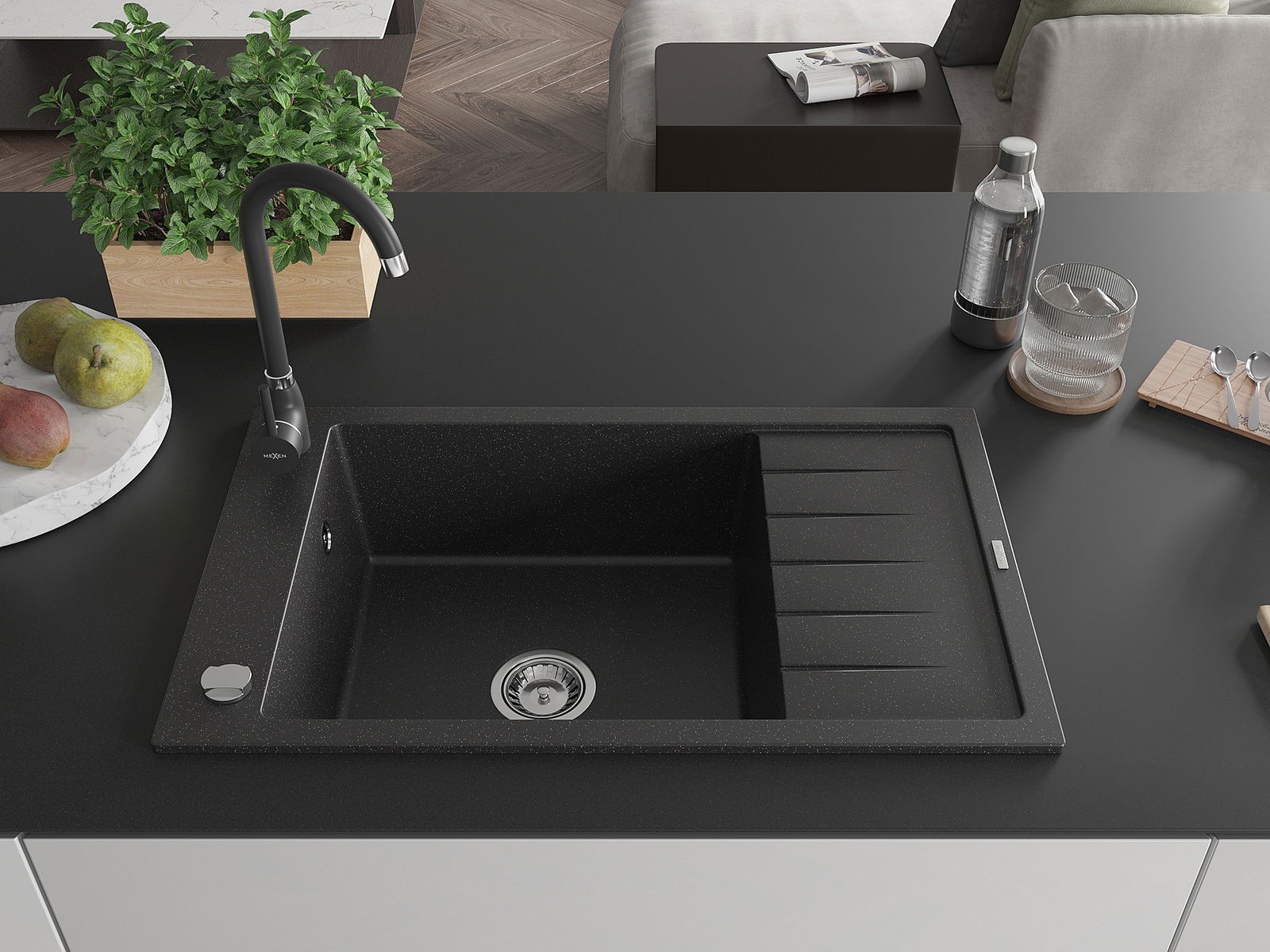 Mexen Elias Granitëspull mat 1-Kummer mat Ofseesser an Telma Kichenhahn, schwaarz/sëlwer - 6511-73-670200-70
