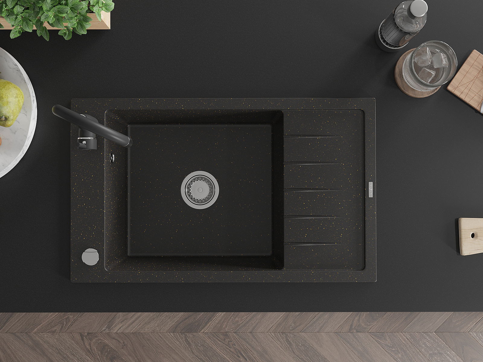 Mexen Elias Granitspullut mat enger Schoss an enger Kichenkraan Telma, schwaarz/gold - 6511-75-670200-70