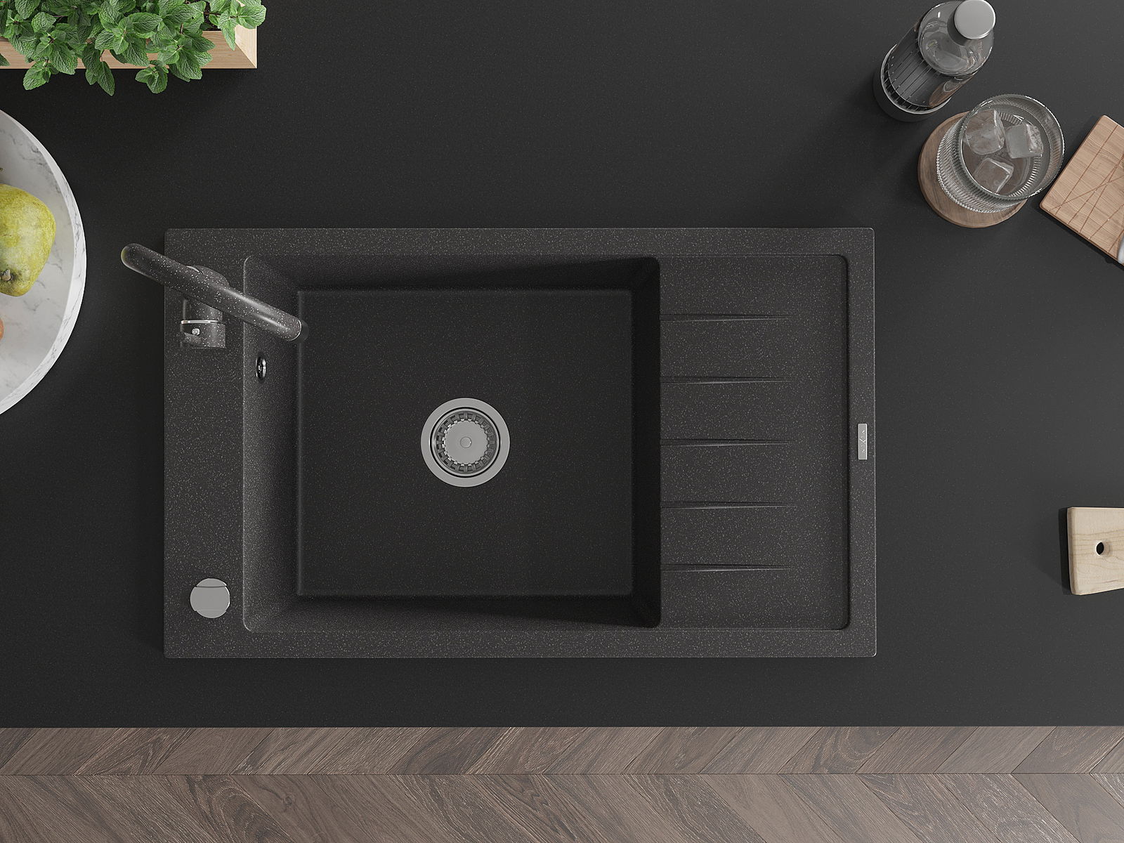 D'Uewerfläch vum Spullbecken ass ganz gutt gehärt, et ass aussergewéinlech resistent géint mechanesch Schied a Kratzer. De bestännege Materialausféierung erlaabt Iech d'gutt Ausgesinn vum Spullbecken fir vill Joeren ze genéissen.