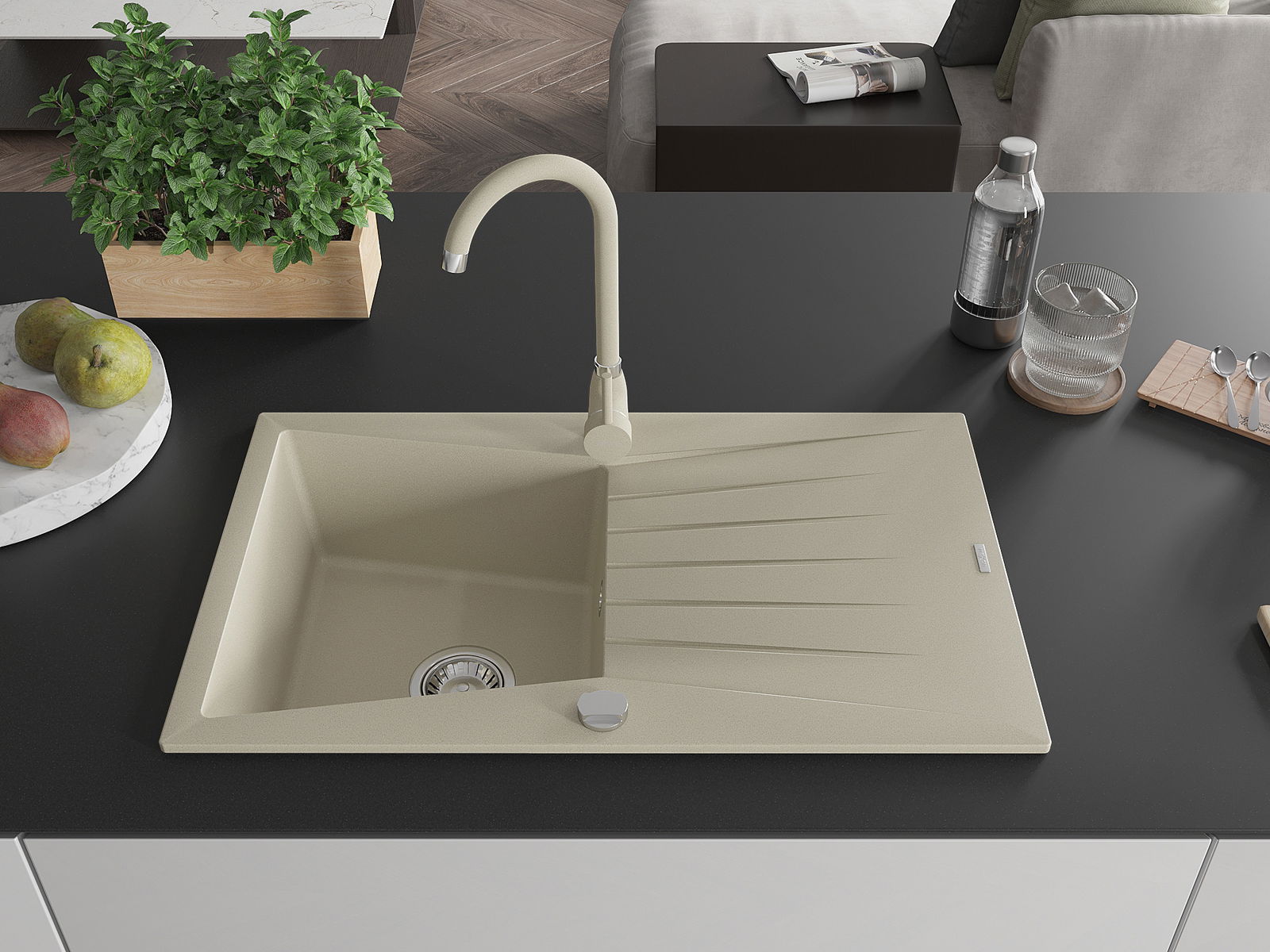 Mexen Cesar Granit-Ëvier mat 1-Kummer mat Drainage a Kichekraa Telma, beige - 6514-69-670200-69
