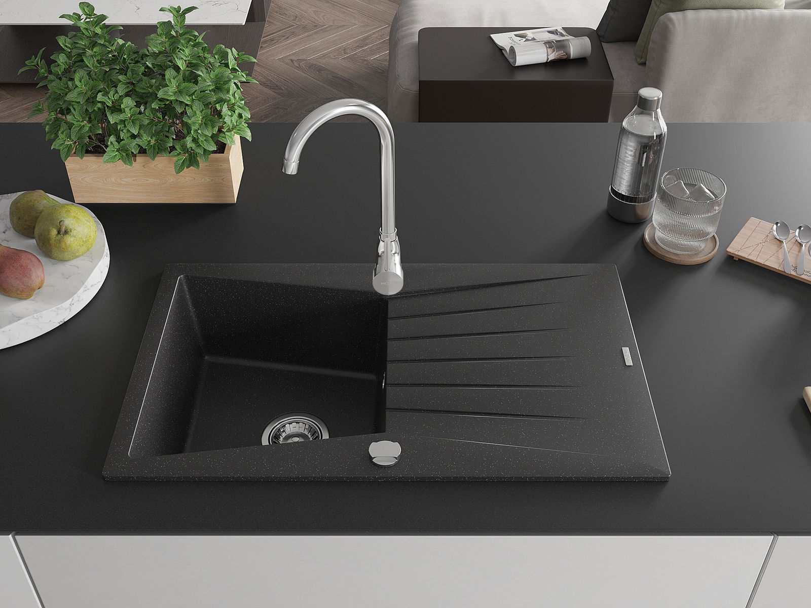 Mexen Cesar Granitspullver 1-Kummer mat Oflaaf an Kichekran Telma, schwaarz/sëlwer - 6514-73-670200-00