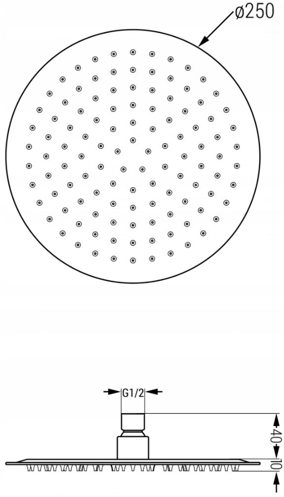 D'Regenschauerscheif ass nëmmen 8 mm déck, wat hir e besonnesch schlank Ausgesinn gëtt. Déi dënn Konstruktioun passt perfekt an e modernt Buedzëmmer an gëtt e Gefill vu Liichtegkeet. Eng exzellent Wiel fir minimalistesch Dekoratiounen.
