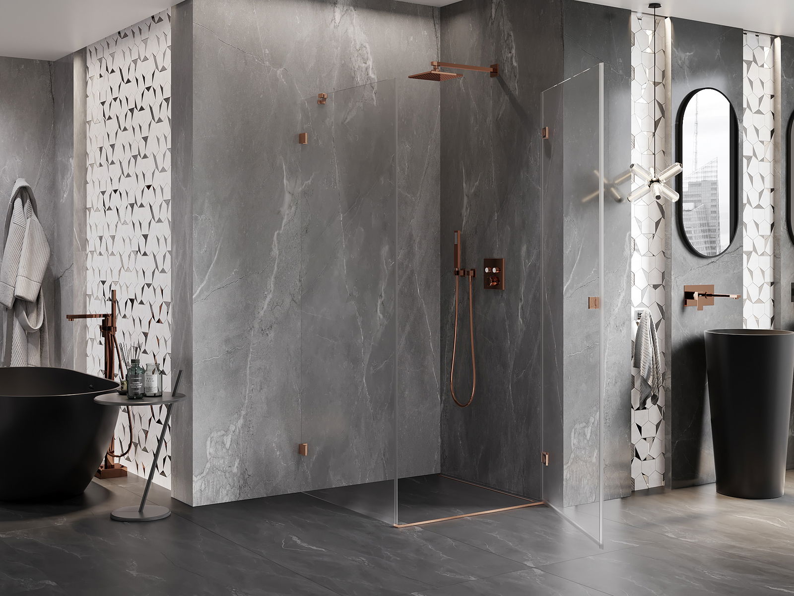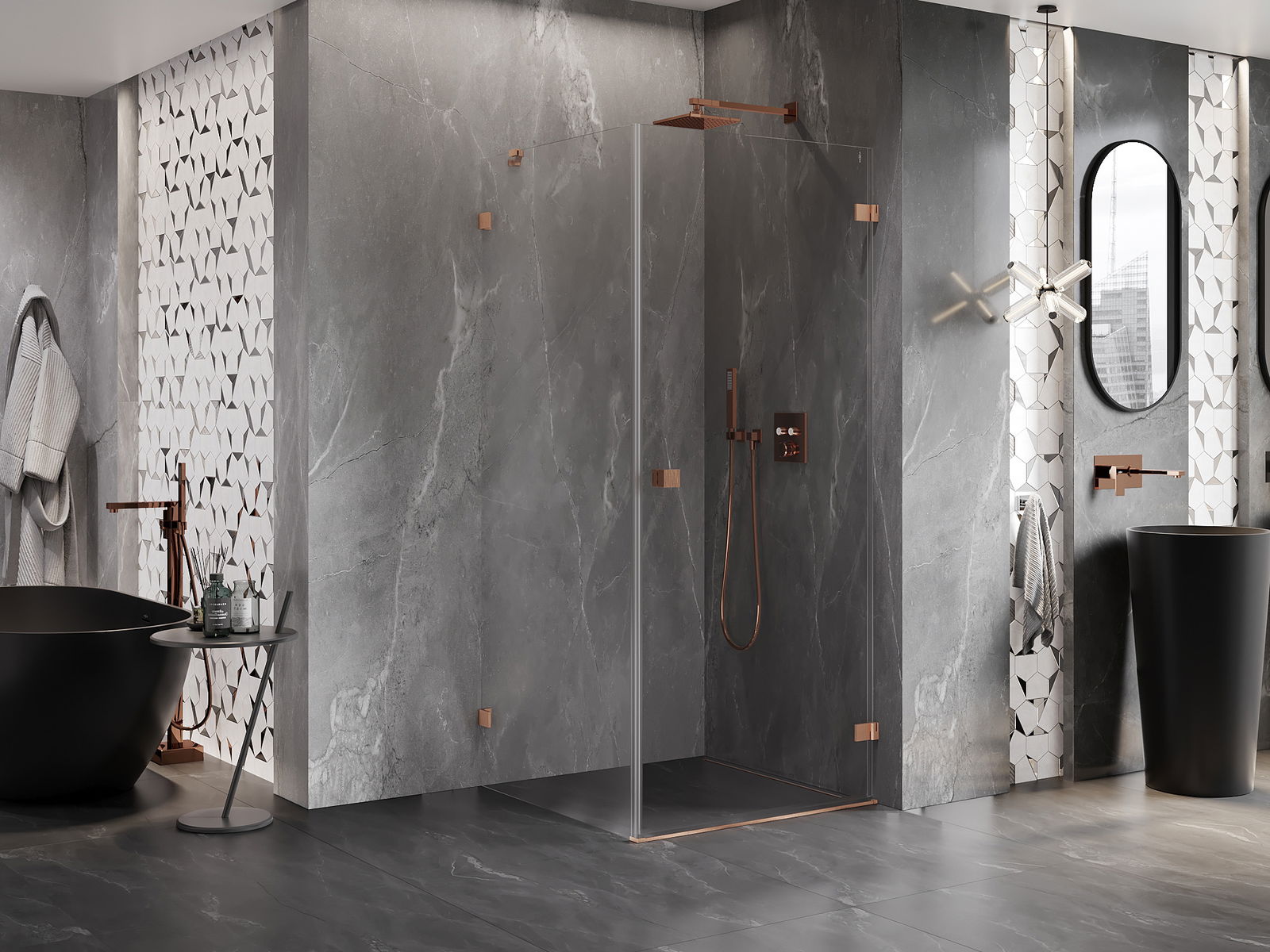 D'Klameren sinn aus ganz haltbarem Messengemach, an doduerch bilden se eng gläichflächen Zeil vu Glas. Et ass eng exzellent Wiel déi Eleganz, Haltbarkeet an modernen Design verbënnt. Mat esou Léisungen kritt d'Dusch un Ästhetik, an gleichzeitig erliichtert et d'Botzen.
