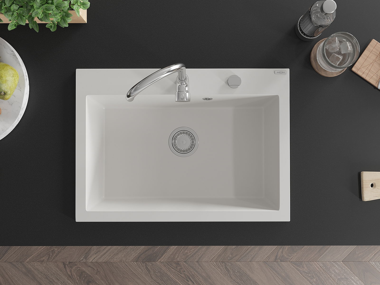 Den Ëmwäschbecken ass aus héichwäertege Granit gemaach. Et stellt eng elegant awer virun allem praktesch Ergänzung fir all Kichen duer, onofhängeg vun hirem Stil. Déi héich Qualitéit an Haltbarkeet vum Granit suergen fir méi järelaang Benotzung.