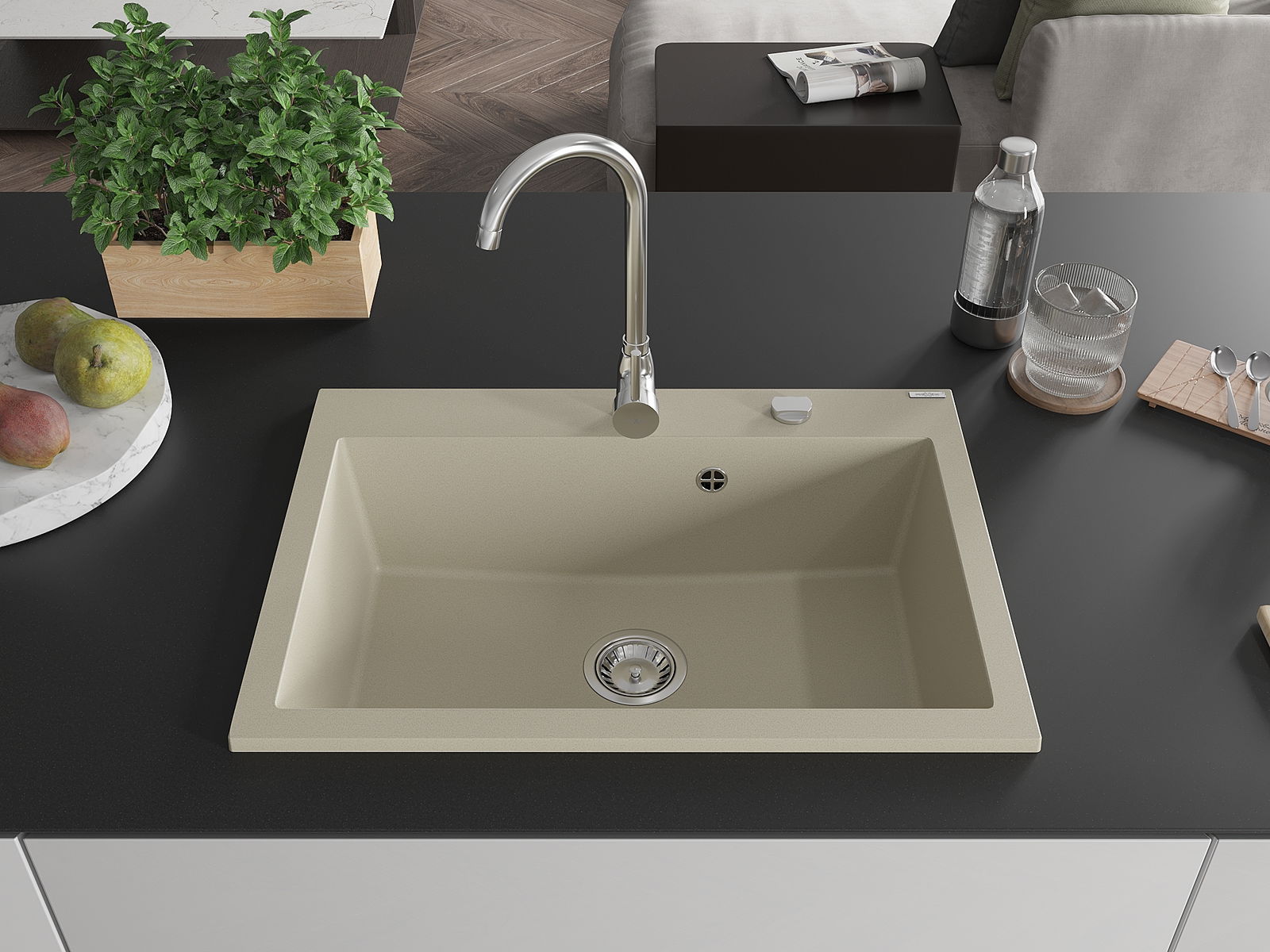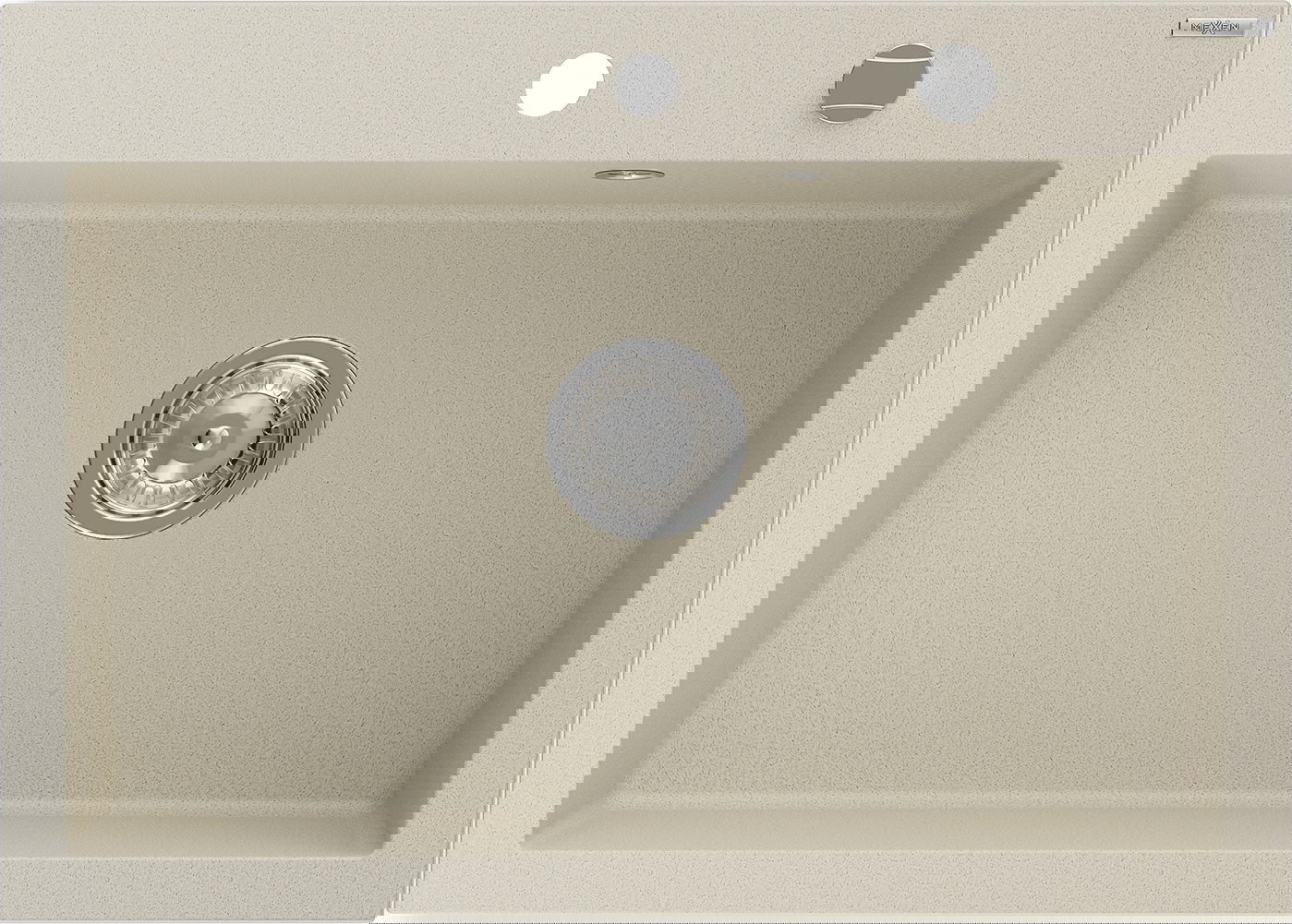 De Spullsteen huet e virgefraist Lach mat engem Duerchmiesser vu 35 mm fir selwer auszeschloen. Et kann ënner anerem genotzt ginn fir e Spender fir Flëssegkeet z'installéieren, deen d'Präsenz vu Plastikfläschen an der Kichen eliminéiert an hir en elegante Finish gëtt.