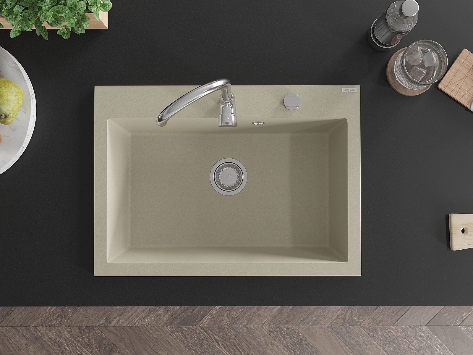 Den Ëmwäschbecken ass aus héichwäertege Granit gemaach. Et stellt eng elegant awer virun allem praktesch Ergänzung fir all Kichen duer, onofhängeg vun hirem Stil. Déi héich Qualitéit an Haltbarkeet vum Granit suergen fir méi järelaang Benotzung.