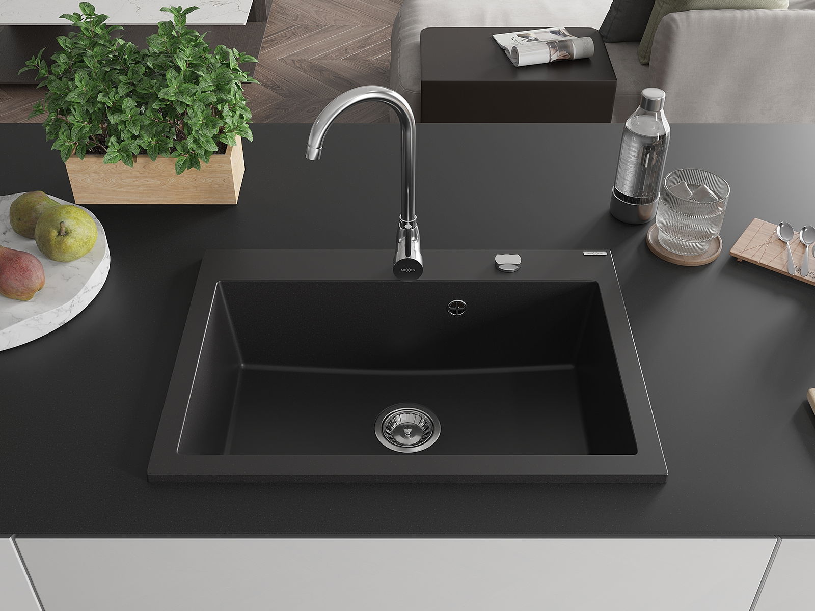 Den Ëmwäschbecken ass aus héichwäertege Granit gemaach. Et stellt eng elegant awer virun allem praktesch Ergänzung fir all Kichen duer, onofhängeg vun hirem Stil. Déi héich Qualitéit an Haltbarkeet vum Granit suergen fir méi järelaang Benotzung.