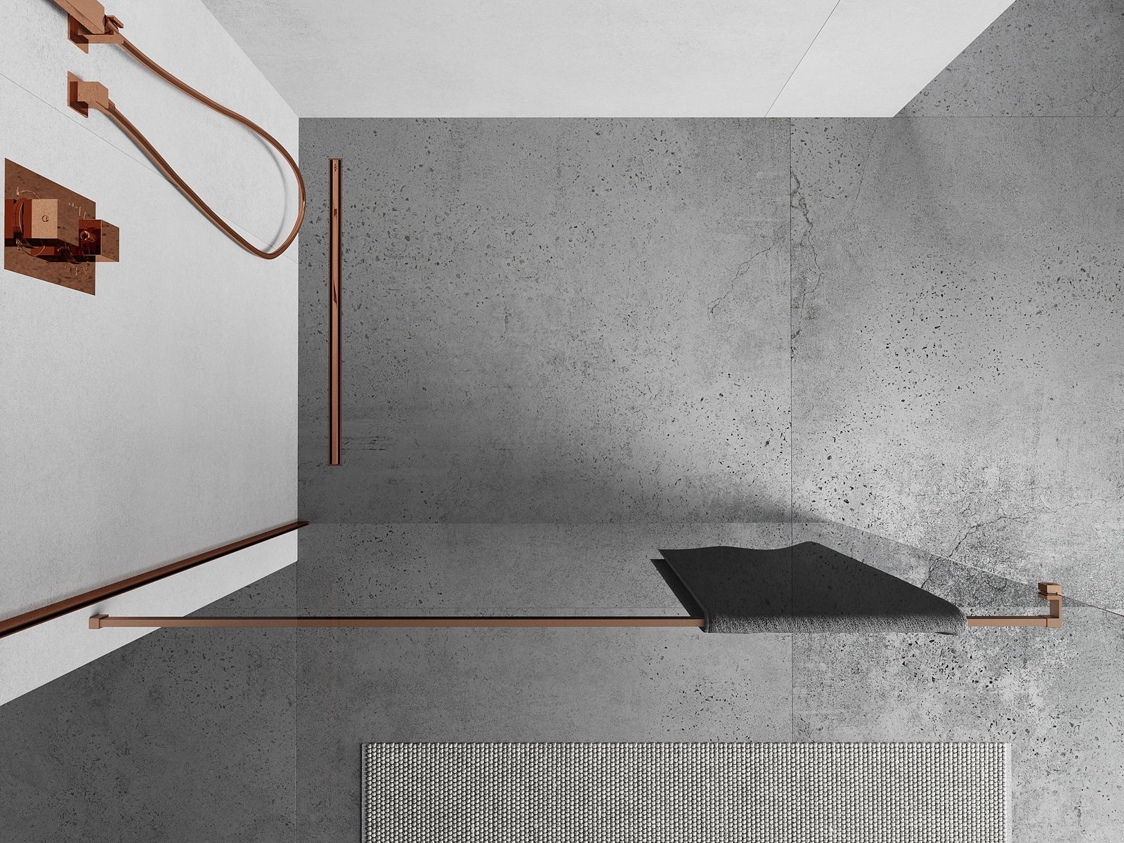 Eng Reling fir Handdicher déi un der Duschwand montéiert gëtt, ass eng praktesch an funktionell Léisung, déi et erméiglecht Handdicher bequem direkt nieft der Bëdszone opzéhänken, wat de Komfort vun der alldeeglecher Benotzung erhéicht.