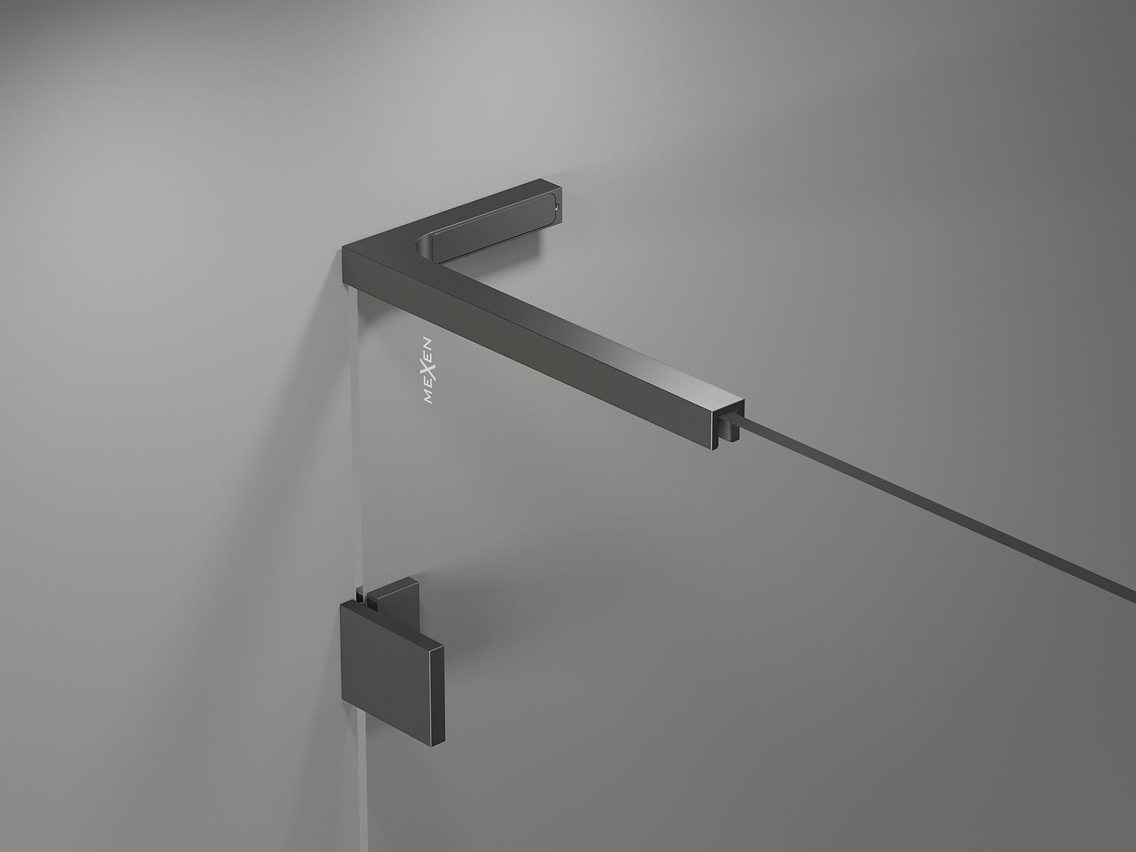 Mexen Lunar-B L rietsch Buedsduschen Kabinn, no e geckeche Seitendier riets, 95 x 80 cm, transparent, Gun Metal