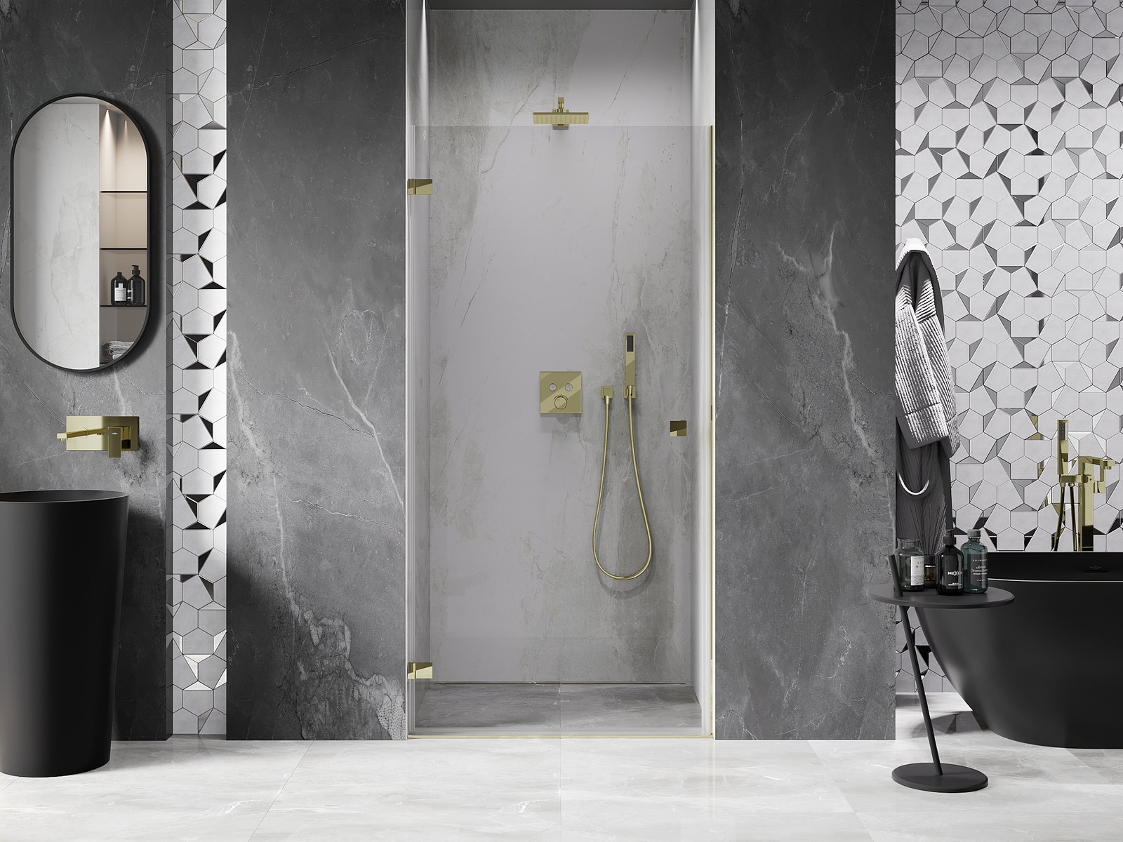 Mexen Lunar-B lénks gekippt Duschdier 100 cm, transparent, gëllen - 832-100-000-50-00-L