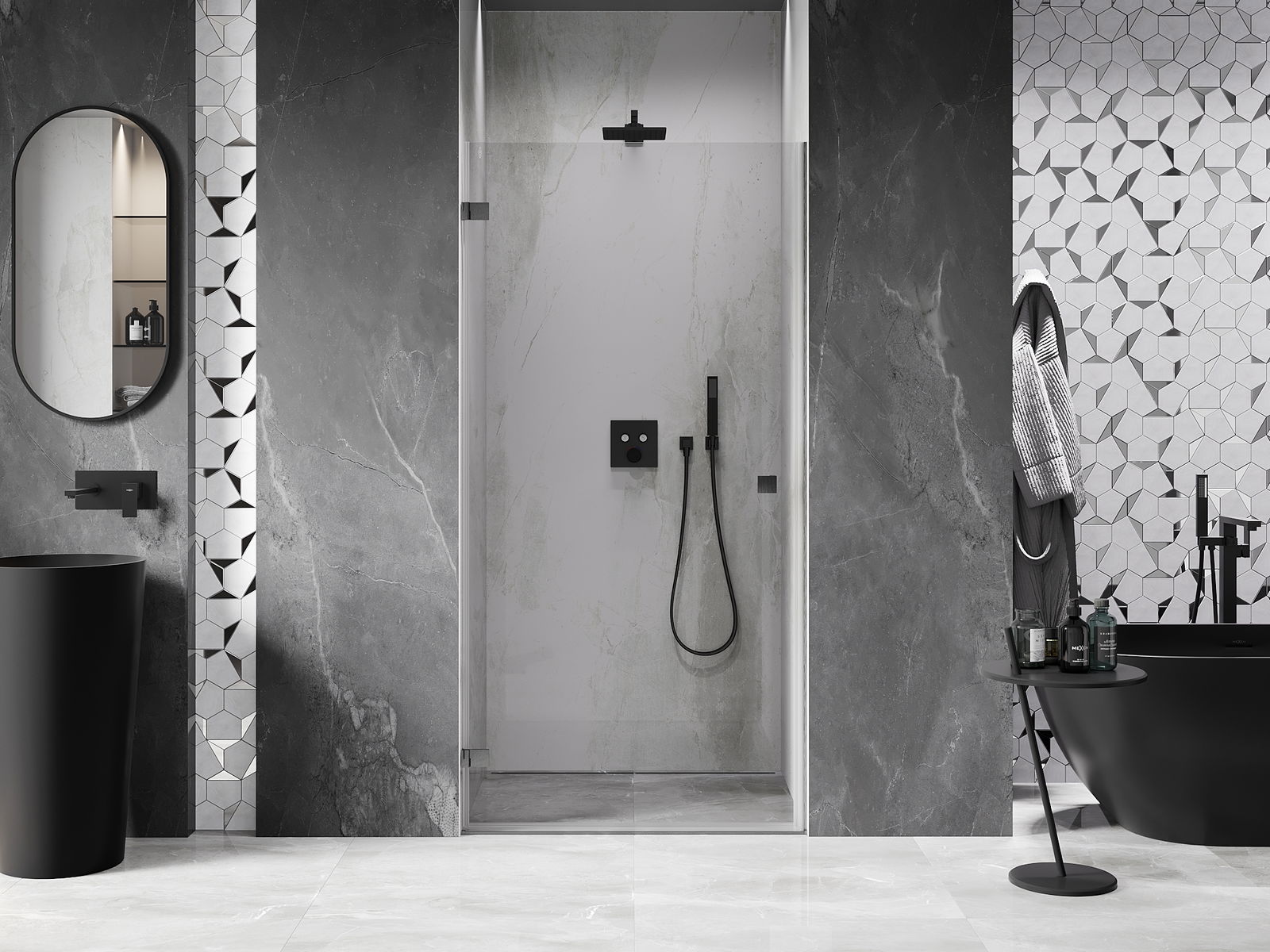 D'Klameren sinn aus ganz haltbarem Messengemach, an doduerch bilden se eng gläichflächen Zeil vu Glas. Et ass eng exzellent Wiel déi Eleganz, Haltbarkeet an modernen Design verbënnt. Mat esou Léisungen kritt d'Dusch un Ästhetik, an gleichzeitig erliichtert et d'Botzen.