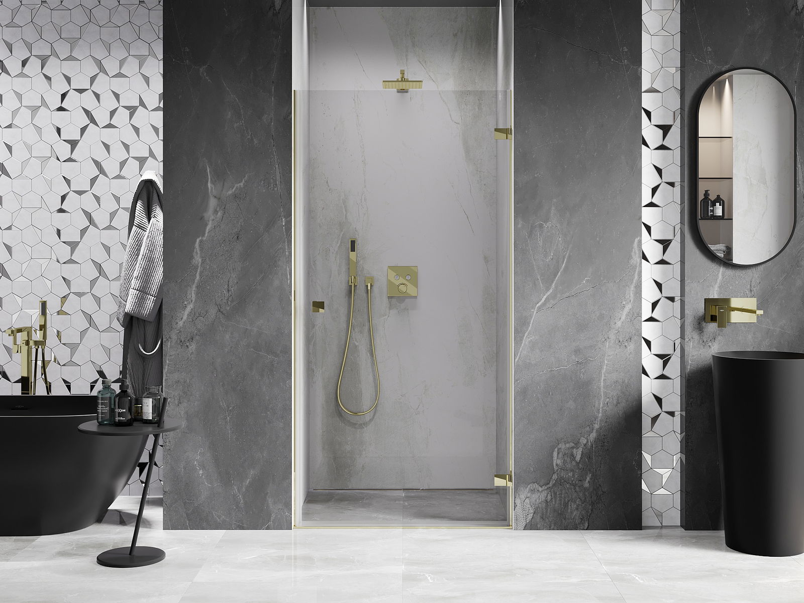 D'Klameren sinn aus ganz haltbarem Messengemach, an doduerch bilden se eng gläichflächen Zeil vu Glas. Et ass eng exzellent Wiel déi Eleganz, Haltbarkeet an modernen Design verbënnt. Mat esou Léisungen kritt d'Dusch un Ästhetik, an gleichzeitig erliichtert et d'Botzen.