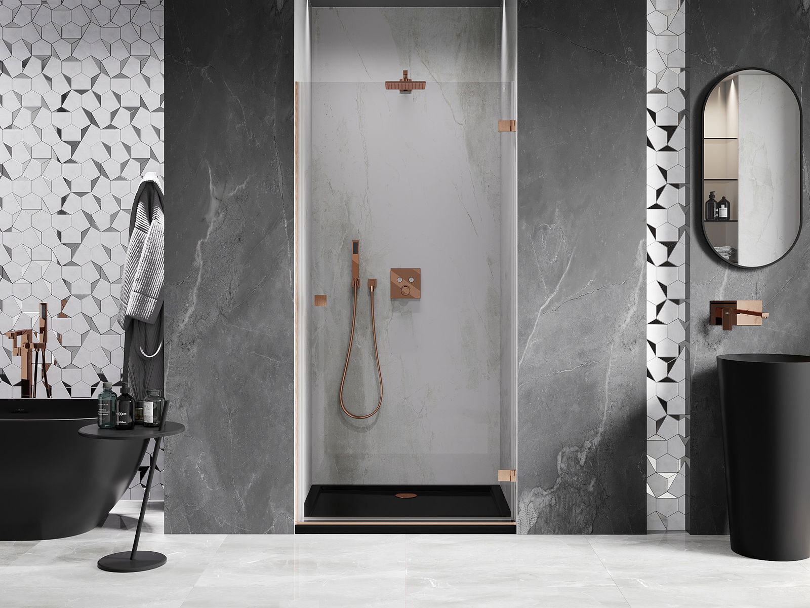 D'Klameren sinn aus ganz haltbarem Messengemach, an doduerch bilden se eng gläichflächen Zeil vu Glas. Et ass eng exzellent Wiel déi Eleganz, Haltbarkeet an modernen Design verbënnt. Mat esou Léisungen kritt d'Dusch un Ästhetik, an gleichzeitig erliichtert et d'Botzen.