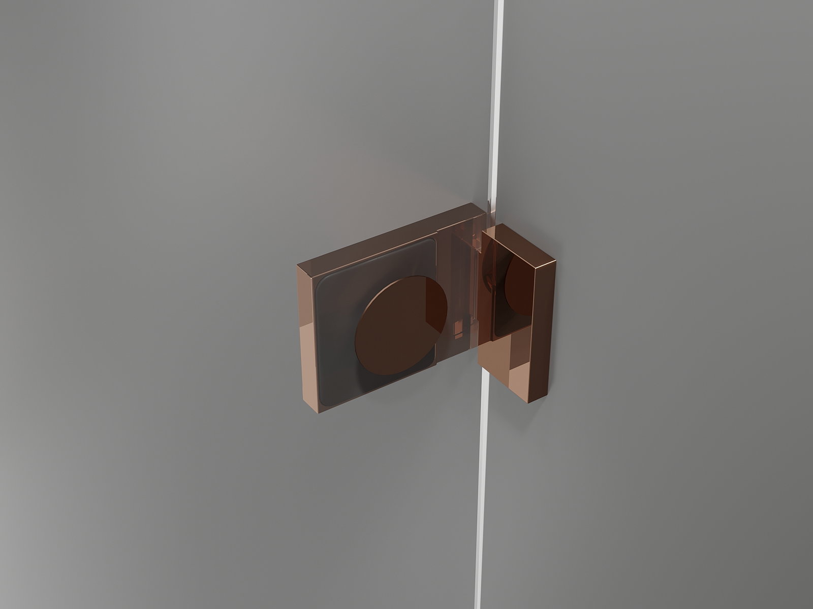 Massiv Messing Grëffer a Scharnieren ausgeriicht mam Glaspaneel