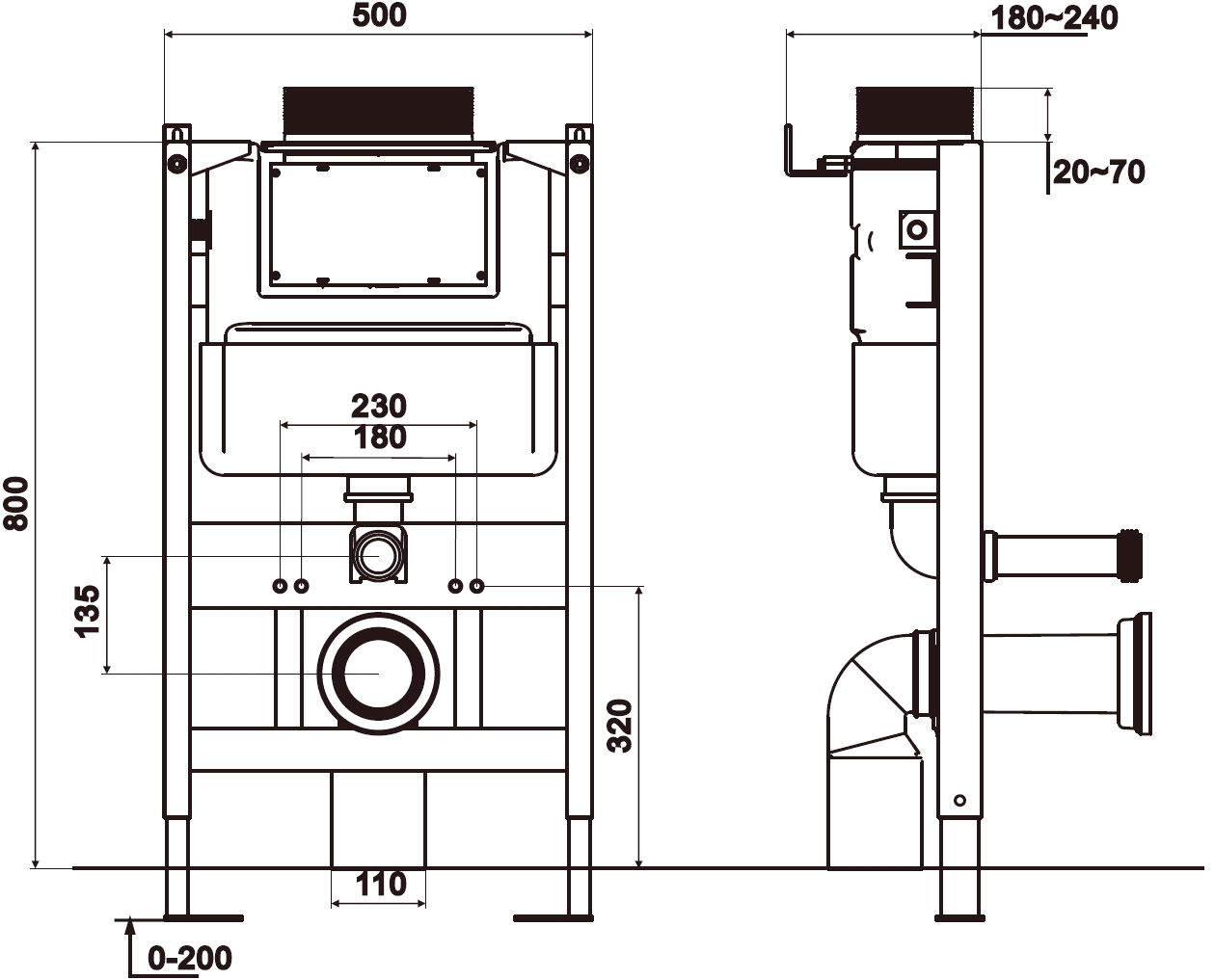 D'Méiglechkeet vun der Héichtverstellung vum Gestell erlaabt eng besser Upassung un ënnerschiddlech technesch Konditiounen am Buedzëmmer. Den elastesche Verstellungsberäich suergt fir Komfort bei der Installatioun an erméiglecht et, déi optimal Héicht vum Gestell ze erreechen.