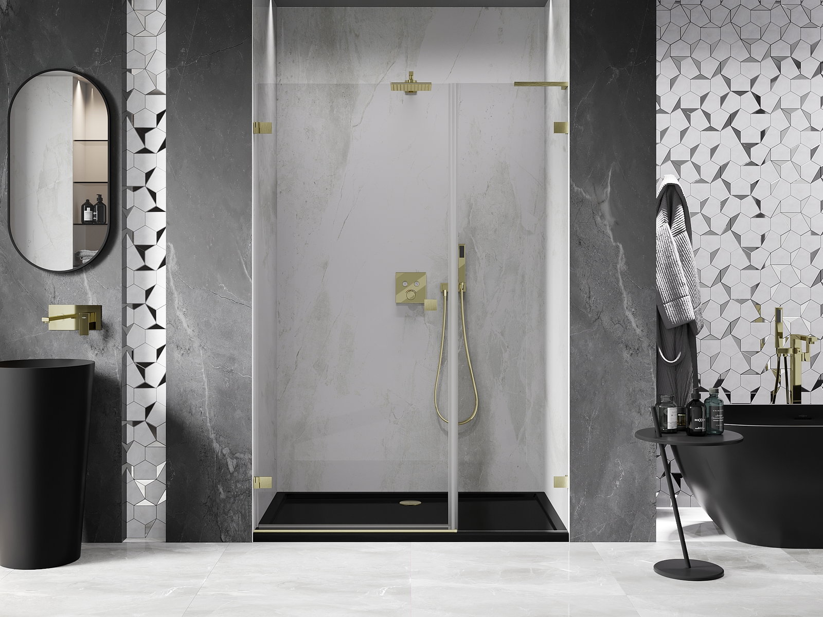 Mexen Lunar-B L lénk Duschdier lénks 145 cm, transparent, vergëllte gebierstet - 832SL-145-050-55-00-L